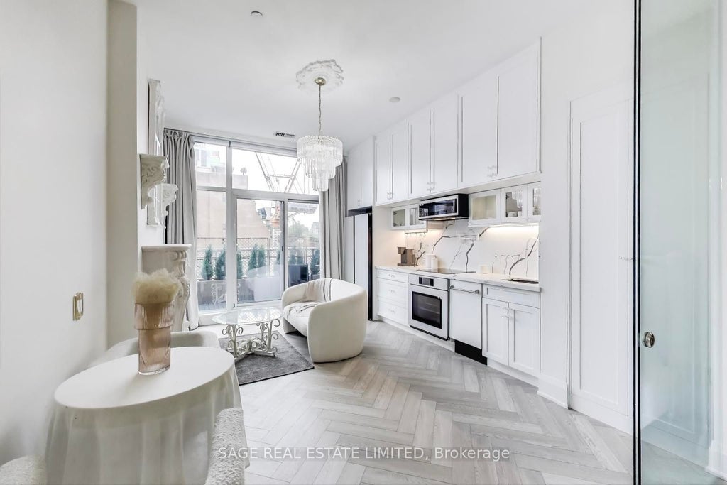 Welcome to Yorkville's Finest! Suite 320 at the newly rebranded YVO Yorkville is a rare offering, setting itself apart with style, luxury, and exceptional upgrades. Located on the exclusive club floor, this fully renovated 1+1 bedroom suite features 10-foot ceilings and a private balcony, a true standout in the building. Blending classic and modern finishes, the home features a functional layout with expansive windows that flood the space with natural light. The upgraded electrical system supports full-size appliances and a separate washer and dryer, a unique advantage rarely found in this residence. The sleek kitchen is equipped with integrated appliances, stone counters, a pot filler and designer details, perfect for both everyday living and entertaining. Residents of 155 Yorkville enjoy world-class amenities, including a state-of-the-art fitness centre, a stylish lounge, and a 24-hour concierge. Short-term rentals are permitted if you wish to make some extra income on the side. Step outside your door and experience Toronto's most prestigious neighbourhood with luxury boutiques, Michelin-starred dining, art galleries, and cultural landmarks all just moments away. More than a home, this is a Yorkville lifestyle at its finest.