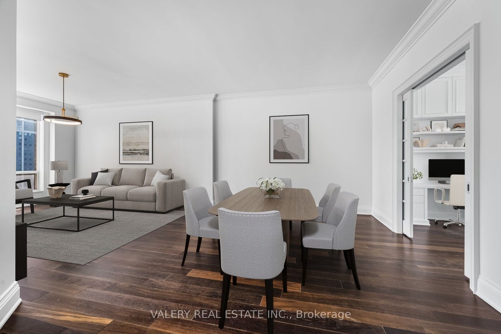 Promotion: 2-month rent free if you move in before November 1st! Also includes, 1 valet parking spot and 1 locker free for 1 year term. Step into 1,900 sq. ft. of elegance and panoramic views of Yorkville. Where 10 ft ceilings and floor-to-ceiling windows flood the home with morning light. The grand foyer leads into a spacious open-concept living and dining area, designed for effortless entertaining and everyday ease. The sleek modern kitchen anchors the main space with premium finishes and seamless flow. A versatile den can serve as a home office or easily convert into a third bedroom. Down the hall, the primary bedroom reveals a tranquil escape with a spa-inspired ensuite, while the second bedroom offers generous comfort. Everyday luxury continues with ensuite laundry, a second full bath, and thoughtful details throughout. Beyond the suite, the building elevates the lifestyle with valet parking, 24/7 concierge, fitness centre, theatre, party room, EV charging, pet-friendly and my favourite touch, complimentary morning coffee in the lobby. In the heart of Torontos most coveted neighbourhood, this residence offers not just a home, but the Yorkville experience elevated, refined, and unforgettable.