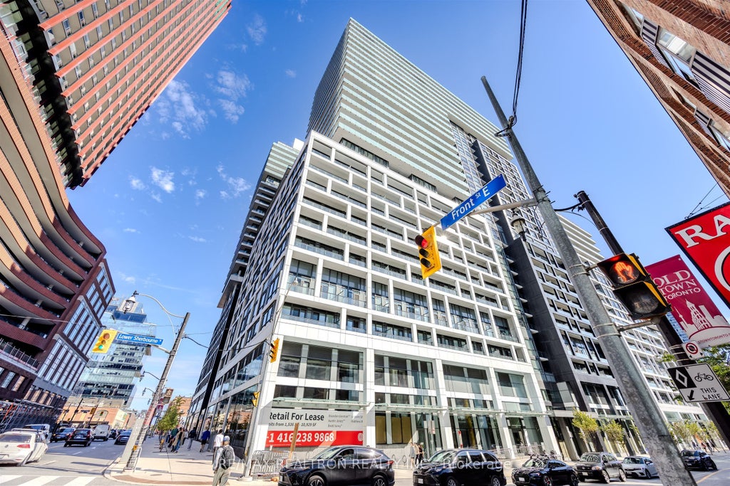 Welcome To Time & Space Condos By The Esteemed Pemberton Group! Experience Urban Sophistication In This Light-Filled Suite Featuring Soaring 9' Ceilings And Sleek Wide-Plank Laminate Floors Throughout The Main Living Areas. Enjoy Unobstructed West-Facing Views Showcasing Breathtaking Sunsets And The City's Iconic CN Tower. Step Into A Welcoming Foyer With A Generous Closet And A Stylish 3-Piece Bath For Added Convenience Right At Your Entryway. The Bright Second Bedroom With Sliding Doors And A Mirrored Double Closet Offers The Flexibility To Create A Home Office, Guest Room, Extra Storage Area Or Recreational Space. A Modern Kitchen Boasts Refined Finishes, Ceramic Backsplash, Undermount Sink, And Ample Cabinetry, Perfect For Everyday Cooking. The Open-Concept Yet Defined Dining And Living Areas Provide A Seamless Layout And A Walk-Out To A Private Balcony Ideal For Summer Evenings. The Spacious Primary Features A Mirrored Double Closet And A Spa-Like 4-Piece Ensuite For The Ultimate Retreat. Crafted For Comfort, Class And Convenience, This Residence Offers Boutique-Style Amenities Including A Fitness Centre, Yoga Studio, Outdoor Pool, Rooftop Terrace, BBQ Area, Games Lounge, Party Room, And 24/7 Concierge. Located Steps From Transit, Cafes, Fine Dining, Shops, Groceries And Parks. Minutes To The Distillery District, St. Lawrence Market, Waterfront And Sugar Beach. This Is Downtown Living At Its Finest! Look No Further.