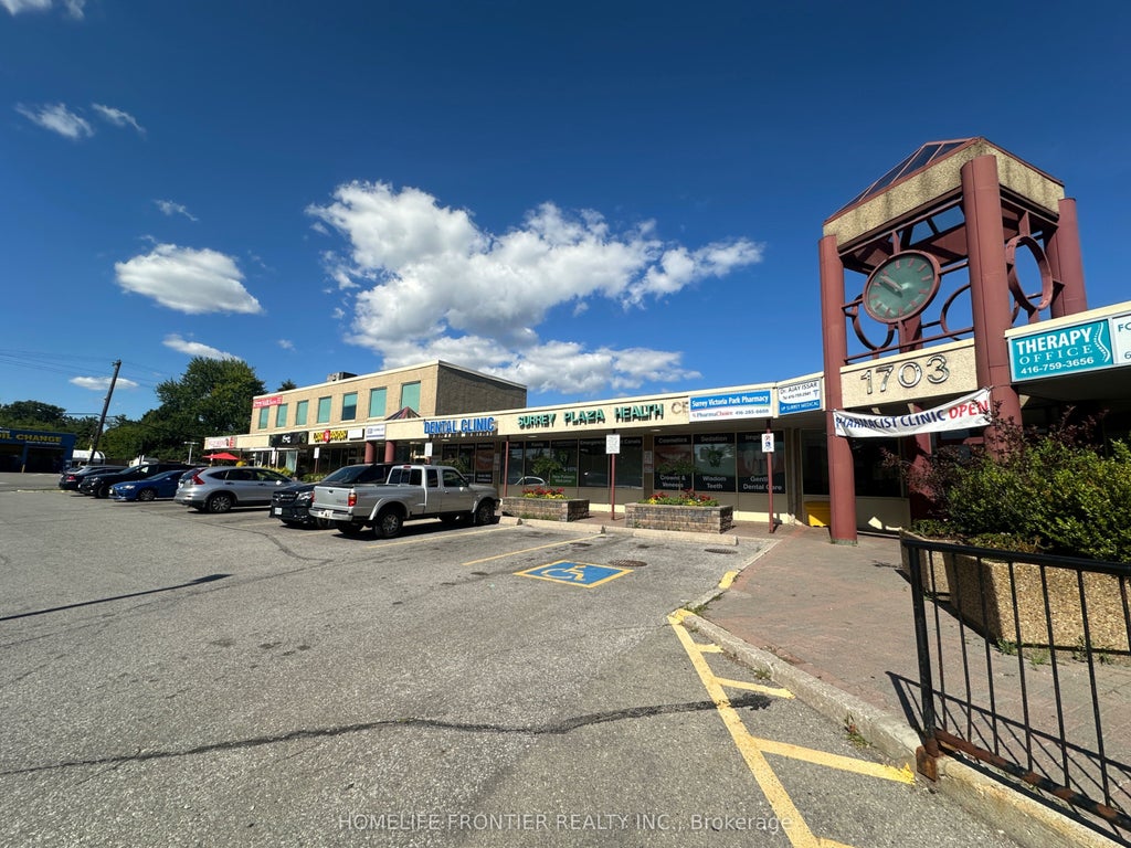 Excellent opportunity in a high-visibility plaza on Victoria Park Ave with TTC at the doorstep! This clean, bright, and professional retail space features large front windows and a private entrance, ideal for businesses such as pizza, burger, takeout/express food retail, money exchange, convenience store, medical office, and more. Includes a kitchenette, washroom, large open concept area, and a private back section perfect for operations requiring both front-facing retail and back-end work space. Located in a well-established plaza alongside family doctors, dentist, pharmacy, daycare, restaurant, nail spa, Gym and other complementary businesses. Rent includes TMI; tenant pays own utilities.