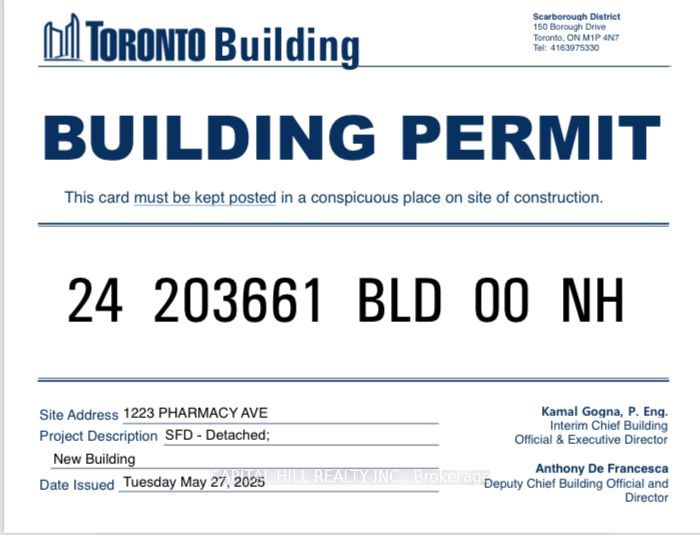 *** Builder Dream Ready to Build*2532sq ft + Basement** 4 Bed 4 Washrooms**Buy today and build tomorrow opportunity**Toronto's sought-after Wexford neighbourhood **No wait for city Approvals***1223A Pharmacy Ave - a severed parcel with dimensions of 27.5 ft x 150.0 ft must be sold together as Bundle Deal with 1223B Pharmacy Ave( can also be sold separately at an additional cost). Huge Private Backyard Backing Onto Gooderham Park.Walk To Wexford Collegiate School & Community Pool, Parkway Mall, Maryvale Parks, Transit, 401, Shopping! Currently Live-able existing 3 Bed 2 Washroom house.**Exceptional opportunity for builders and contractors to build your next project**The seller can provide a complete construction , including full project management, on request. Building permit and detailed drawings available upon request**Many Newly Built Million Dollar Homes in neighbourhood*