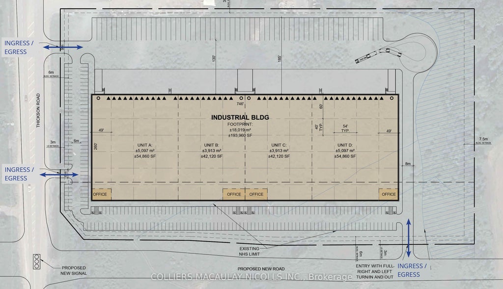 Design-build purchase opportunity in prime Whitby location. +/- 193,000 SF proposed freestanding building with the opportunity to customize to suit. Pending site plan approval. Access to variety of amenities & large labour pool. 130' shipping court depth, 54'x40' bay sizing & 60' staging bay. 59 trailer parking stalls. Heavy power available. LEED & Zero Carbon certification available