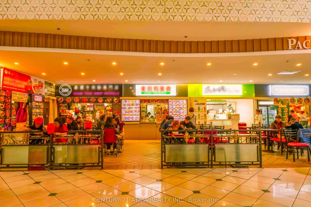 Own a fully leased food court unit in Pacific Mall, North America's largest indoor Asian shopping centre an iconic cultural landmark where generations have gathered. This investment features 3 food stalls, a 64-seat dining area. Generates over $198,000 in annual rental income (over $360,000 when combined with other listing MLS #N12107338, with 6 stalls total), with strong net returns and a cap rate of over 6.25%. Prime second-floor location beside elevators and escalators ensures maximum foot traffic. Pacific Mall offers surface and underground parking and consistently draws high visitor volume. Strategically positioned on the Markham-Scarborough border, it attracts loyal local shoppers and steady tourist traffic. Buy a piece of memory an opportunity to invest not just in a thriving business, but in a place where visitors come to taste nostalgia, reconnect with culture, and experience a slice of home. A rare chance to own a part of a true landmark. Must be purchased with MLS #N12107338. (Photos have been slightly altered to protect privacy of vendors.)