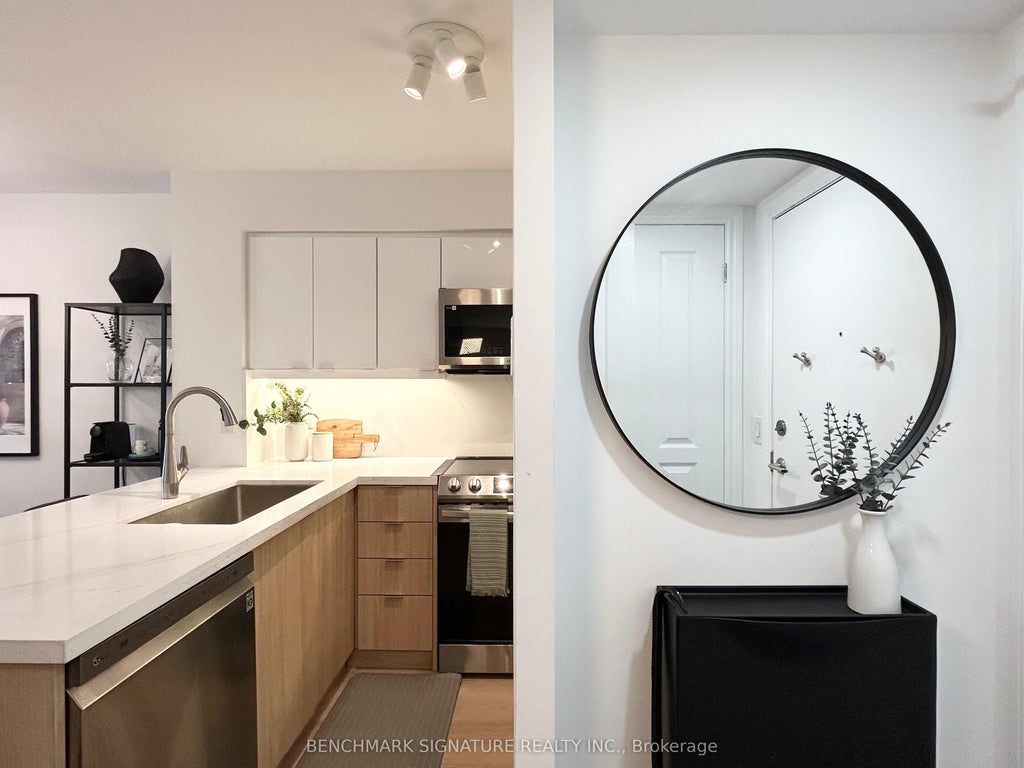 Prime Area In Downtown Markham Area! Steps To Banks, Gym, Theatre, Supermarket & Wide Variety Of Restaurants. Only A Few Minutes Walk to Top Ranked Unionville High School. Located Close to 407/Hwy 7/Go Train & Go Bus. Newly Renovated One Bedroom Plus Den Unit With All Upgrades Including Flat Ceiling & Walls Newly Painted. Kitchen With New Granite Counter Top, New Sink, New Cabinets, New Back Splash & Under Cabinet Lights. All Stainless Steel Appliances Range From 1 To 3 Years Old & In Mint Condition. Bathroom Is Upgraded With New Cabinet/Sink, New Tub Surround Tiles. Bedroom With Pot Lights & New Built In Closet Cabinet. Move In Ready! This Unit Comes With One Underground Parking Close To Building Entrance & One Locker.