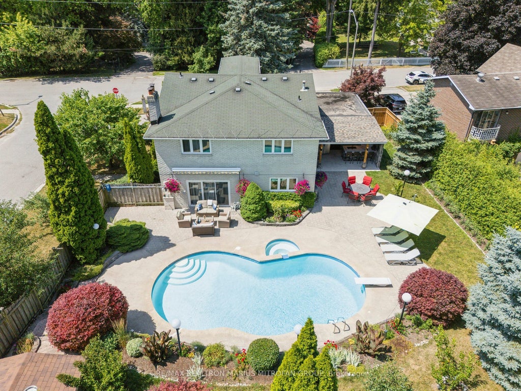 Welcome to a home where every detail has been thoughtfully renewed for modern living. Set on one of the largest lots on the east side of German Mills and directly across from the community centre, it offers a rare combination of space, privacy, and location. Families will also appreciate being just steps from two of Ontario's most respected schools: St. Robert Catholic High School and St. Michael Catholic Academy. Between 2021 and 2024, the home underwent a complete transformation with high-quality renovations throughout. Spanning more than 4,200 sq. ft., the interiors are bright, open, and welcoming. Wide-plank hardwood flooring connects beautifully designed spaces, from a chef-inspired kitchen to spa-like bathrooms featuring heated floors, indulgent rain showers, and a dry sauna. The lower level offers flexibility for a recreation room, gym, or private suitemaking it ideal for extended family. The backyard is designed to bring people together while still offering a sense of retreat. At its centre is a custom concrete saltwater pool with a rare marbleized finish, complemented by a heated hot tub, outdoor shower, and dedicated powder room. A full bar, dining terrace, and lounge with integrated entertainment provide the perfect setting for summer gatherings, family celebrations, or evenings with friends. Surrounding mature landscaping and privacy fencing keep the space quiet, safe, and beautifully secluded. The home's curb appeal is equally inviting, with a custom entry door and landscaping. And with easy access to Highways 404 and 407, TTC and GO Transit, Bayview Village, CF Markville and Fairview Malls, along with North York General and Mackenzie Health Hospitals, you're never far from the conveniences of the city while still enjoying the calm of a family-friendly neighbourhood. More than a residence, 77 German Mills Road is a place to put down roots, welcome family and friends, and enjoy both quiet moments and memorable gatherings in a private, elegant setting.