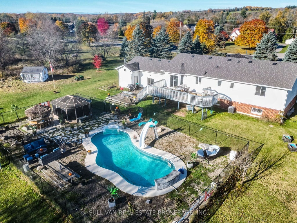 Welcome to Country living at its very best! This home is nestled in the heart of Hockley Village and is situated on 13 beautiful acres with 415 feet of frontage with potential for a 1 acre Severance. Your private oasis features a heated inground salt water pool with waterfall, Tikki bar, pool deck gazebo, hot tub and fire pit. Next to the pool there is an inground trampoline and an older basketball court that can easily be resurfaced to accomodate an ice rink in the winter and or a tennis court in the summer. This country bungalow has a 3 car garage and offers over 2900 square feet of living space. The main floor has a wide open concept boasts a nice sized kitchen with center island overlooking the large family room and dining area with sliders to the back deck. There are 3 generous sized bedrooms on the main floor, the primary room has a walk in closet and a nice sized 5 pc ensuite. The lower level is perfectly designed and features a large rec room with bar, a 4th bedroom, 3 piece bath, den, laundry room, utility room and storage. This home is a short walk to the famous Hockley Valley General store and a few minutes drive to the beautiful Hockley Valley Resort for those Ski, Golf and spa enthusiast. This is truly a remarkable area to live. Check out the virtual tour and contact your agent for a private showing. NOTE: Buyer / Buyer Agent to do their own due diligence with respect to governmental authorities as it pertains to severance of land.