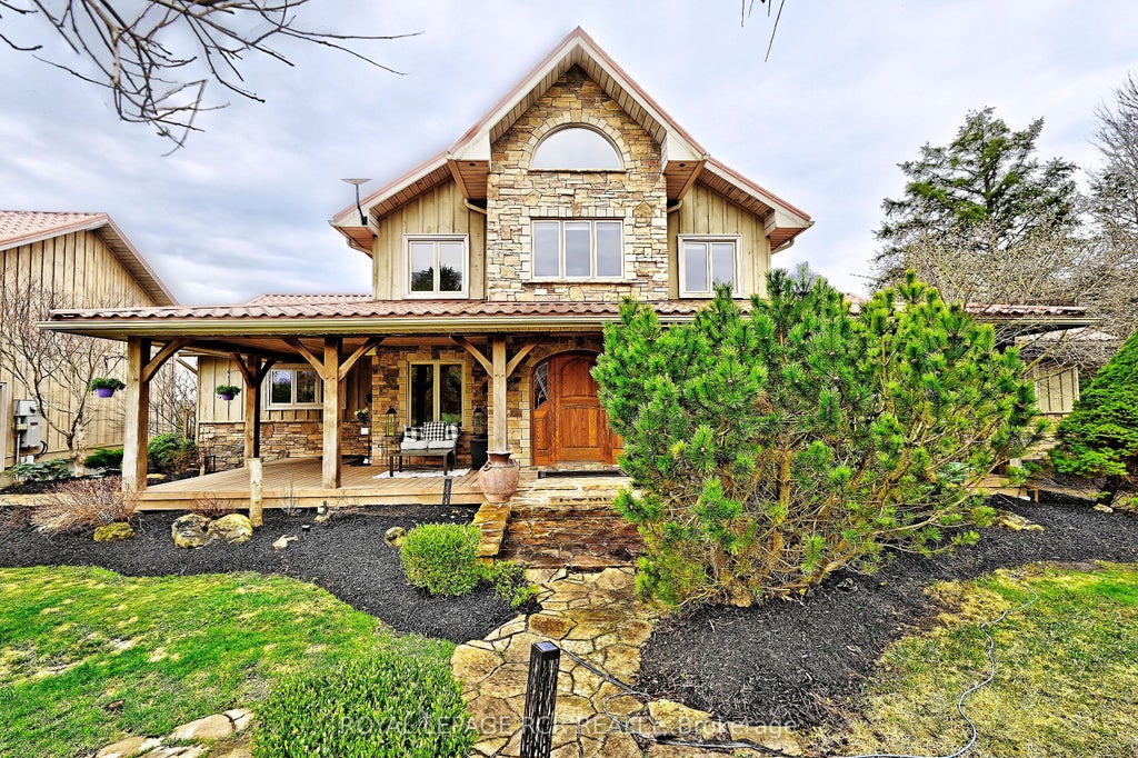Set on approximately 7.7 acres of pristine countryside, 3327 9th Line is a breathtaking custom-built country retreat home, offering a perfect blend of rustic charm, modern luxury, and masterful craftsmanship. Natural elements refine this one-of-a-kind residence, surrounded by lush gardens and framed by sweeping landscapes. Featuring 3+1 bedrooms and 4 bathrooms , this stunning majestic architectural home welcomes you with grand lodge-style interiors enhanced by natural stone, rich wood beams, and exquisite millwork. The heart of the home is a soaring great room, showcasing a dramatic 33-foot stone fireplace and a full wall of windows that flood the space with natural ligth and panoramic views. The gourmet kitchen, blending old-world character with modern finishes, flows seamlessly to a spacious deck and BBQ area - ideal for outdoor entertainin against the backdrop of the expansive property. Upstairs, the private primary suite offers a true sanctuary, complete with a spa-like ensuite featuring a walk-in glass shower, soaking tub, and walk-in closet. The finished walkout basement extends the living space with a full bar, recreation room, gym area, guest bedroom, full bath, and a rejuvenating steam room for total relaxation. Enjoy cozy evenings gathered around two gas fireplaces or the charming wood-burning fireplace, with in-floor heating warming all tiled areas and a whole-house sound system providing ambience throughout. A spacious 3-car garage equipped with an EV charger, plus a fully self-contained loft apartment (complete with kitchen, bedroom, and bath), offers incredible flexibility for guests, family, or rental potential. Additional features include a Generac generator, large workshop shed, sprinkler system, fibre optic internet, and a wired security system - ensuring complete peace of mind. This is country living at its finest, where timeless natural beauty meets luxurious modern comfort in a truly unparalleled setting.