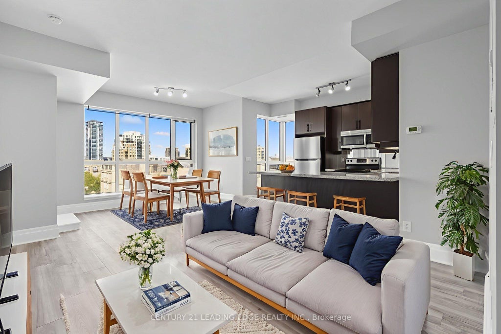 This luxury condo, located in the heart of Downtown Markham, offers a bright corner unit with 9-foot ceilings and a spacious, well-designed layout. The suite features stunning finishes, including granite countertops and mirrored backsplash. Residents can also enjoy a range of amenities, including a simulated golf room, theatre room, weight room, and more. Close To All Amenities. Situated in a well-planned community, it is within walking distance to Downtown Markham's parks, theatres, restaurants, banks, and shopping. Steps To Grocery, YMCA, Cineplex, Pan Am Center, Plenty of transit options, Viva and Express TTC Bus to Finch At Your Doorstep, Close to Go Train, Hwy 7, 404 & 407