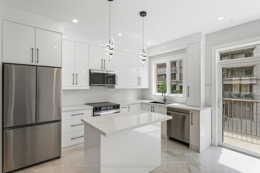 Just Completed!! Tastefully Renovated 4-Bedroom Townhome in Sought-After Commerce Valley! This Rare, Functional Layout Is Ideal for Modern and Multi-Generational Living. Never Lived In Since Full Top-to-Bottom Renovation. Bright, Airy Interior with 9' Ceilings, Oversized Windows, and Wide-Plank Water-Resistant Flooring Throughout. Sleek High-Gloss Kitchen Featuring 36x36 Porcelain Tiles, Tall Cabinets, Premium Caesarstone Counters & Backsplash, Gunmetal Double Sink, and Samsung S/S Appliances. Designer Bathrooms with 24x32 Porcelain Tiles, Custom Vanities, Gunmetal Fixtures, and High-End Finishes. Two Spacious Primary Suites on the Upper Level, Each with His & Hers Closets and 4-Pc Ensuites. Main Floor Features a Great Room and Additional Bedroom with 4-Pc Bath Access & Walk-Out. Finished Basement with Direct Access to Underground Garage. Additional Features Include Upgraded Central Vac, Remote-Controlled Lighting, New 1-Panel Doors with Black Hardware, and Modern Metal Stair Pickets. Low Monthly Maintenance Covers Water, Lawn Care, Snow Removal, Roof & Window Maintenance. Prime Location Near Hwy 404/407, GO Station, Parks, Shopping, Dining & Top-Ranked Schools. Move-In Ready A Must-See!