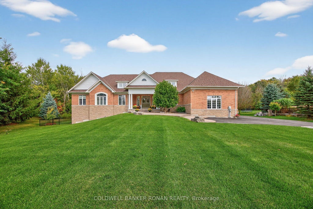 This beautiful sprawling 4 plus 2 bedroom 5 bathroom executive bungalow with over 6000 sq ft of living space sits on a spectacular 1.2 acre lot backing onto forest & walking trails has it all! Rare opportunity as there hasnt been a house for sale in over 4 years in this very unique estate community. The long tree lined driveway large enough to fit all your big toys leads to a patterned concrete front entry & large covered porch, where inside you are greeted by a natural gas double sided fireplace & 9 foot ceilings.. The main floor features 4 bedrooms with access to ensuite bathrooms, a powder room, a formal dining room, main floor laundry with entrance from the side & the 3 car garage featuring wall racks & epoxy flooring, a bright open concept large eat-in kitchen with 2 islands, wall oven, pantry & flowing into the vaulted great room with multiple walk-outs leading to the deck. Downstairs, the fully finished walk-out basement has 2 more bedrooms, a bathroom, an office with custom built-ins, huge storage rooms, a huge cantina & multiple entertaining areas complete with pool table. Walk-out to your private gorgeous landscaped & fenced backyard oasis with an inground saltwater pool, hot tub & an in-ground sprinkler system. This lovely neighbourhood has 26.7 acres owned by the community & features many kilometres of private forested walking trails & a social committee that organizes fun events throughout the year . Located just outside Alliston & only 10 min to Hwy 400 & 45 min to Vaughan. Award winning Golf is 5 min away & ski hills & beaches are just a short drive away.