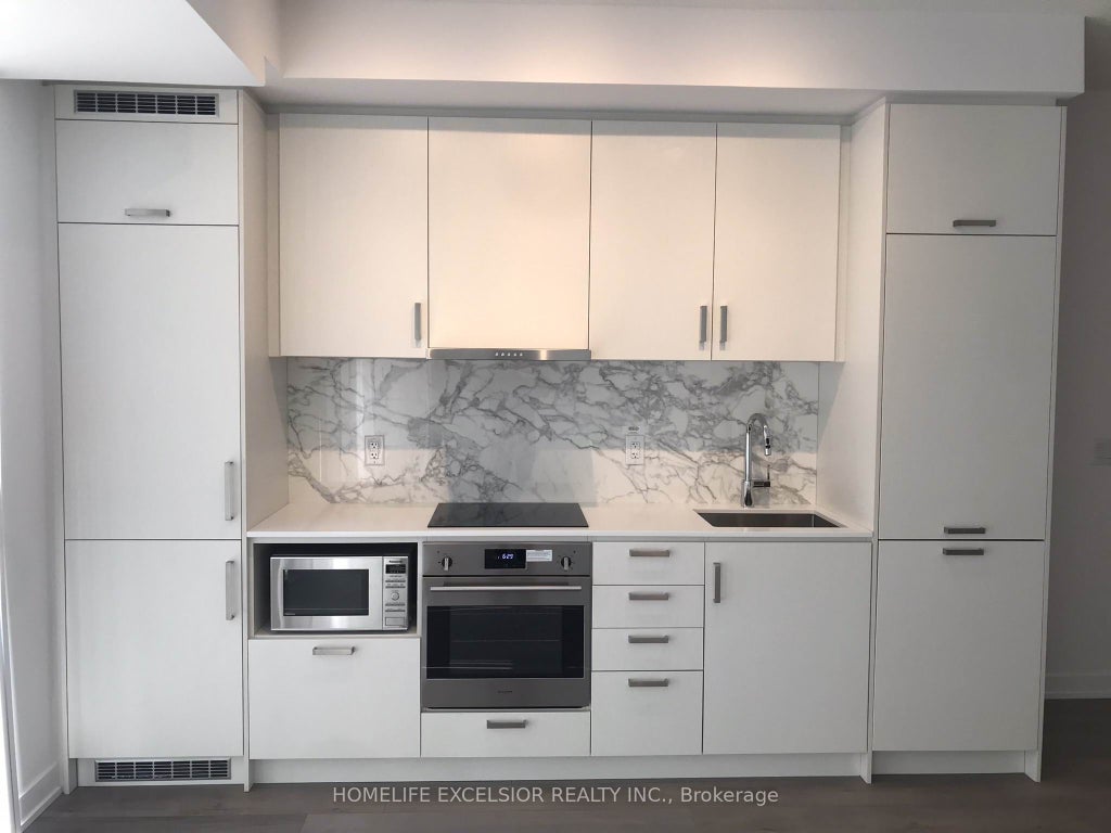 Spacious studio unit in Mobilio South Tower by Menkes. 9' ceiling in all principal rooms. Thermally-insulated energy efficient windows. laminate wood flooring in foyer, living/dining room and kitchen. Quartz countertop and stainless steel under-mounted sink basin in kitchen. European style appliances include refrigerator with bottom-mount freezer, cook top, oven, B/I dishwasher, microwave, frontloading washer & dryer. 24 hour concierge, welcoming lobby, state-of- the-art fitness room, party room etc.