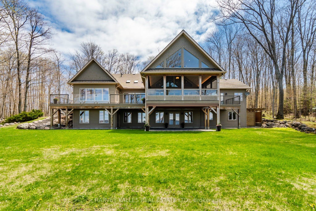 Perched high on a ridge at Cedar Point in the coveted Cedar Ridge community, this home is located just under 2 hours from Toronto. This spectacular residence captures sweeping, panoramic views over the turquoise crystal-clear waters of Georgian Bay with stunning western sunsets. Set on a premium 4-acre lot, this thoughtfully designed home offers unmatched privacy, natural beauty, and a true four-season lifestyle. Crafted for both relaxation and entertaining, this home features an open-concept kitchen, dining and great rooms with soaring vaulted ceilings, an abundance of natural light through oversized windows and skylights, and oak flooring. Warmth and ambience abound with a granite stone wood-burning fireplace in the great room and a cozy propane stove in the sunroom. The wrap-around Western Red Cedar deck and screened porch create a seamless flow between interior and exterior spaces. The private primary suite features a 5-piece ensuite and direct access to its own exterior deck - perfect for quiet mornings with a coffee and unobstructed views of the Bay. The walkout lower level, with in-floor radiant heating and the upper level loft, offer additional living space for family and guests. Located near the well-known Thunder Beach community, Awenda Provincial Park, Lafontaine Beach & the towns of Penetanguishene and Midland. World-class skiing at Blue Mountain and Horseshoe Valley is just 40 minutes away. While nearby golf courses, sailing clubs, skiing clubs, trails, and sandy beaches offer recreation for every season. A rare opportunity to own a four-season retreat in a truly breathtaking setting!