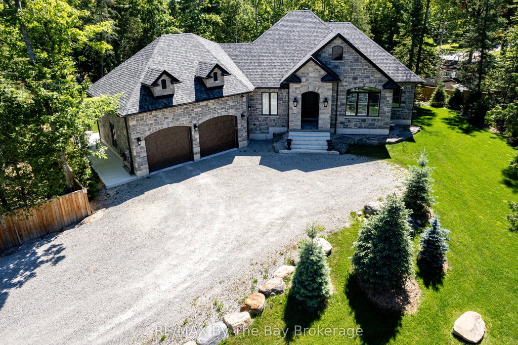Stunning Almost Beachfront Custom-Built Home At Allenwood Beach! This exquisite property boasts over 3,500 square feet of finished luxury living space. Approximately 900 feet to the pristine sands of the worlds longest freshwater beach. This home is the epitome of coastal living and features a beautiful all-stone facade exterior with a natural stone blend. A 150-foot private driveway provides ample space for parking including an RV plug-in for your recreational vehicle. The grounds are your private oasis with over 500 feet of privacy fencing enclosing a beautifully spruce tree lined yard creating a tranquil retreat. The 950 square foot insulated 2-car garage boasts 13-foot ceilings, 3 insulated garage doors with high lift openers and gas rough-in for a future heater. Once in the home, the Great Room dominates with a soaring cathedral ceiling flooded with natural light. The focal point is an oversized, gas Napoleon fireplace in all natural granite stone veneer finish. French doors provide access to the covered cedar porch and private yard perfect for exclusive outdoor entertaining and relaxation. The heart of the home is the spacious gourmet Kitchen with a seating area at an oversized centre island, copious storage with high end appliances and granite countertops. Nine foot ceilings throughout with tray and vaulted in the bedrooms. The primary suite is a serene retreat. It boasts a spa like 5-piece ensuite with a 2-person rain shower, deep soaker tub, water closet and walk in closet with built in live edge waterfall vanity. An entertainers dream, the fully finished basement includes a theatre room, a versatile large recreation room and 3rd bedroom. Unwind in the Infrared 3-person Sauna Ray sauna. This extraordinary property offers a unique blend of rustic and luxury finishes and ultimate privacy within steps of one the most sought after beaches on the shores of Georgian Bay. Don't miss this opportunity to make this your forever home.