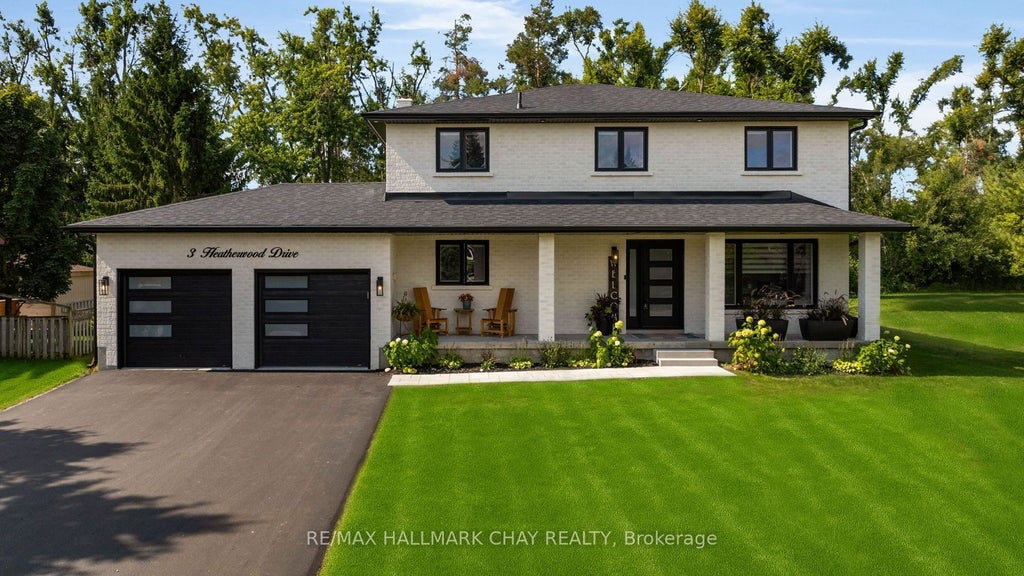 PRESENTING 3 Heatherwood Drive in Springwater's sought after Midhurst community of custom homes, offerings family-centric old-school charm. The curb appeal of this home starts from the moment you drive through this established neighbourhood with mature trees, where each home is unique. With over 2400 sq.ft. of functional living space and an open main level floor plan - this fully remodelled home offers a perfect blend of style, form and design. Tasteful neutral decor with contemporary finishes throughout incorporating extras like top-to-bottom oak staircase, hardwood flooring, feature walls, gas fireplace, walk-in pantry with custom storage, beverage station, study nook. Custom upgraded Chef's kitchen - truly the heart of this home - has been renovated to today's modern standards with an oversized island for serving/prep work, exceptional stainless steel appliance package with gas range, s/s range hood, farmhouse-style sink, quartz countertops, plenty of cabinets for storage, as well as a separate butler's pantry (built-in microwave) for even more storage space! Open concept from the kitchen to the living/dining rooms allows for effortless family connection and entertaining. You will appreciate the natural light throughout the main level from the large wrap around window package. Convenience of main floor office, 2pc guest bathroom, laundry with access to double car garage. Private upper level presents a large primary bedroom + oversized walk in closet with organizers + stunning 5pc ensuite (dual sink vanity, free-standing soaking tub, separate glass walled shower, as well as 3 comfortable bedrooms for family/guests, renovated main bath. Extend your living space outdoors into the large backyard of this premium lot - for family play time, outdoor games, room for four-legged friends to frolic. This property easily meets the needs of a busy household - even a home-based business (with ample parking for vehicles, RVs) - with plenty of room for everyone's comfort!