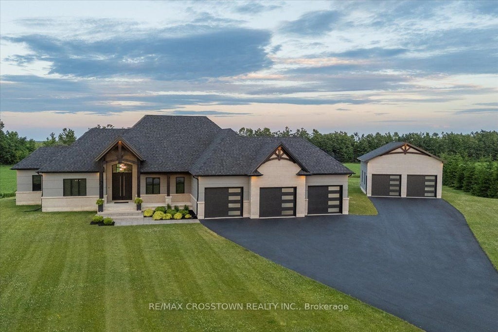 Tucked away on a quiet, prestigious court in Oro-Medonte is a home that captures what so many dream of,peace, space, and sunrises that take your breath away. This custom-built bungalow is more than just a house its a retreat. Set on an oversized double lot with open skies and forested views, it offers the rare luxury of serenity without constant upkeep. Enjoy sweeping views and the freedom to enjoy every inch of your land. You have the freedom to design the outdoor lifestyle you've always imagined from a resort-style pool and charming pool house to a custom play area, winter ice rink, or entertainers dream yard. This is a rare canvas where your vision can come to life. The elegant stone and stucco exterior is complemented by a triple-car garage, plus a detached 750 sqft 4-car garage with oversized doors and 100-amp panel. The detached garage is roughed-in for a 375sqft loft and the ultimate setup for toys, cars, or a dream workshop. Inside the home you'll find over 4590sqft of finished living area, soaring 12-ft ceilings in the foyer and great room, 10-inch white oak flooring, and 8-ft solid core doors set the tone for luxury and comfort. The private primary suite features a spa-like 5-piece ensuite and a walk-in closet that feels like its own room. Two additional bedrooms share a 5-piece bath, while the mudroom/laundry space is perfect for family life. The covered porch was made for relaxing mornings with a stone fireplace, built-in TV, and flush-mount infrared heater. And in the basement? A golf lovers dream, your very own professionally custom-built state-of-the-art golf simulator. Endless friendly competition and movie nights too as this expansive space easily transforms into your own private home theatre. Along with a gym, a guest bedroom, a new 4-piece bath, and space for a future bar, and you've got the ultimate entertainment zone. 1 Best Court isn't just a home it's where luxury meets lifestyle, and every sunrise feels like the start of something beautiful.