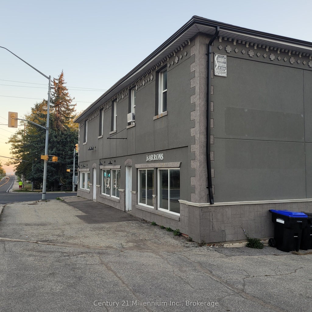 Excellent retail/commercial space with high exposure at the four corners in Duntroon. Great space for an art gallery with potential for live/work for artists and craftspeople. Other possible uses include professional offices, florist, furniture store, and many other retail uses. Fronts directly onto County Road 124 with large windows facing the road. Approx. 1650 square feet. Priced at $1600.00/month plus TMI $700/month plus HST.