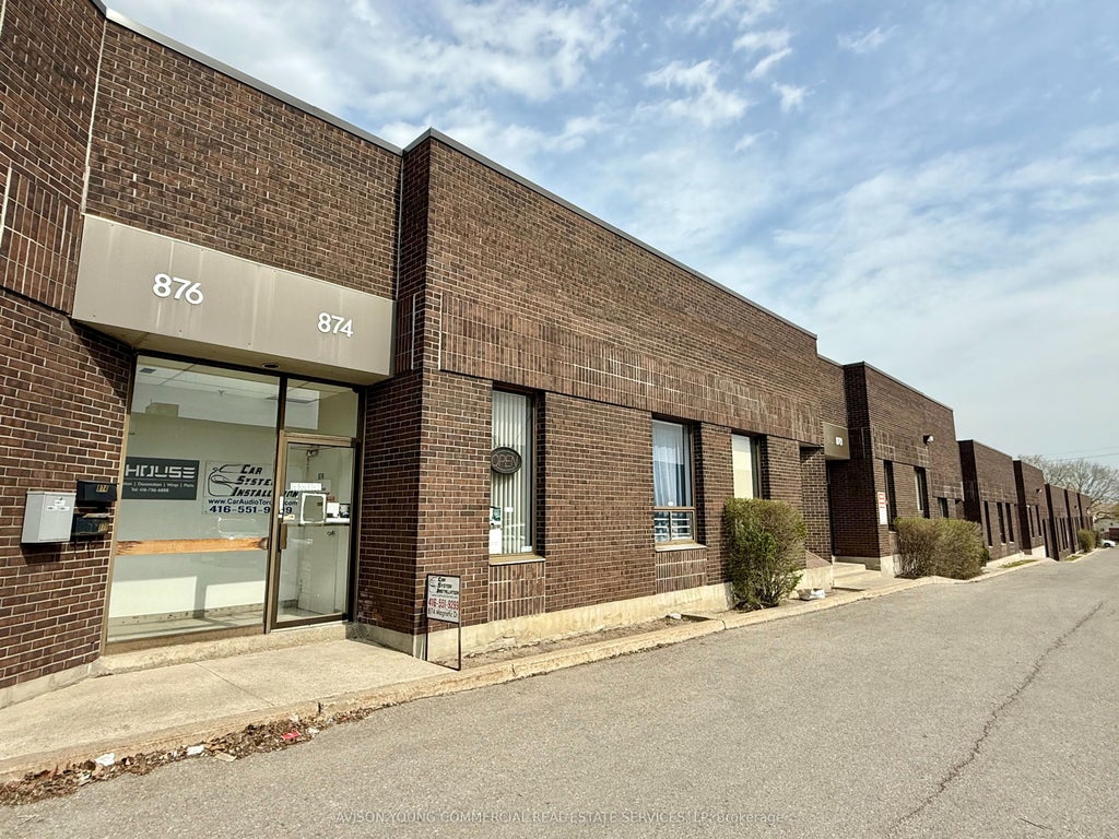 Industrial unit with drive in shipping located at Steeles and Alness. Located in a professionally managed complex. Big box retailers across the street (Home Depot, Fabricland, Winners, Sherwin Williams). Parking available. Short walk to TTC bus stop. Clean uses only.