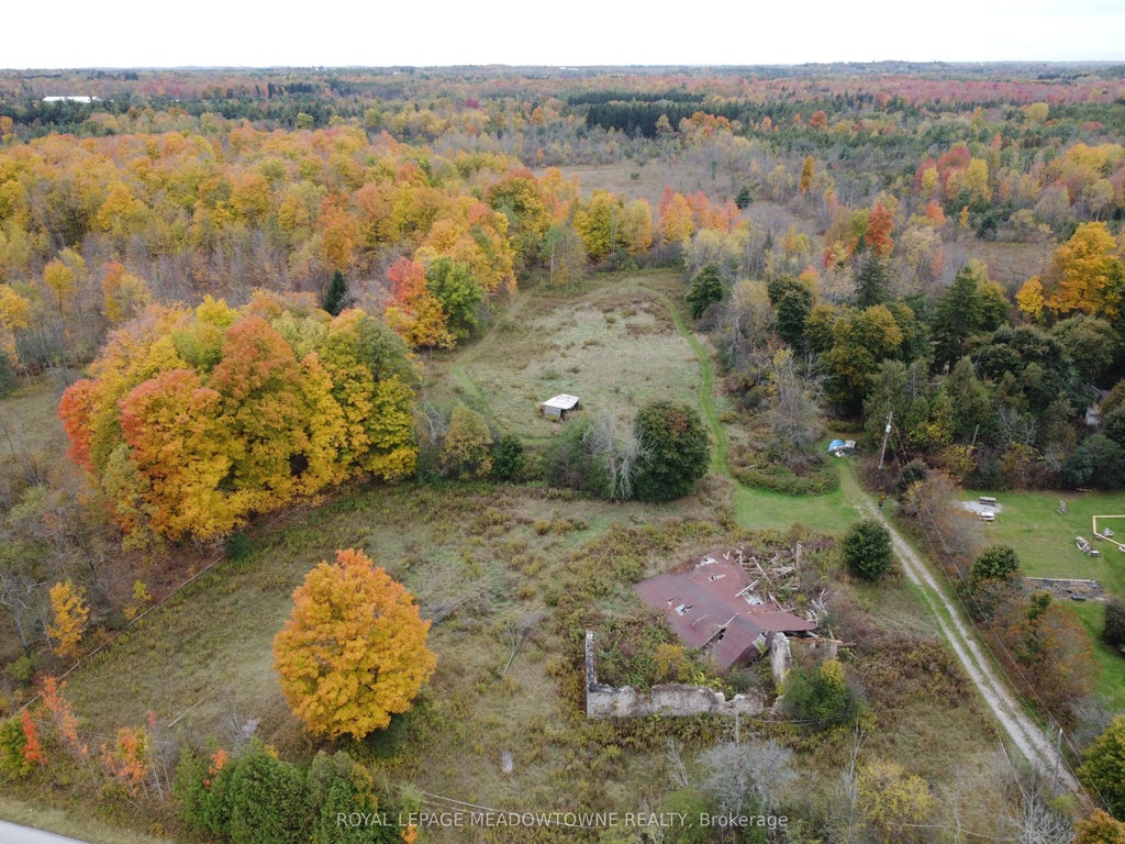 83-Acre Farm Land Opportunity - Iconic stone farmhouse, forest & fields. This rare 83-acre property - located just south of Hwy 401 and north of Campbellville on a paved road - offers compelling blend of open fields and mature forest. It create an idyllic setting for a private estate, retreat or the revivial of a working homestead farm. Previously, the fields were in crops where horses roamed. With vision and care, this former farmstead can be brought back to life - for crops or equestrian uses. At the heart of the property stands an 1890 Ashlar stone, 11/2 storey farmhouse that has withstood the test of time, proudly retaining the timeless beauty of it original exterior. Renovated in the 1950's, it presents an exceptional opportunity to restore or incorporate its impressive stone facade into a truly magnificent custom estate home. Also on the property are the distinctive ruins of a grand 1890's stone bank barn. The barn's enduring footprint offers lots of options. Zoned A2, the property includes a pond in the northern area and a portion of Killbride Creek running through the northwest corner, bordering the Pioneer Creek trail. The land is not within the NEC mapping, offering fewer building restrictions. Centrally located near Milton, Campbellville, Highway 6 and the 401, this rare offering combines natural beauty, rich history, and the potential to restore a working farm or develop a showpiece country estate.