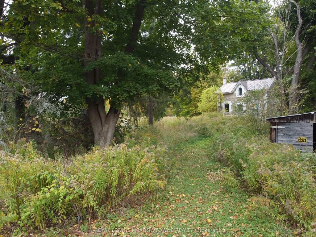 This rare scenic 83-acre property-located just south of Highway 401 and the Village of Moffat, and north of Campbellville on a paved road. A beautiful blend of open fields and mature forest creates an idyllic setting for a private estate, recreational retreat, or future homestead farm. At the heart of the property stands an 1890 Ashlar stone farmhouse with a metal roof. While not heritage-designated, 1.5-storey farmhouse that has withstood the test of time, proudly retaining the timeless beauty of its original exterior. Renovated in the 1950s, it presents an exceptional opportunity to restore or incorporate its impressive stone facade into a truly magnificent custom estate home. Also on the property are the distinctive ruins of a grand 1890s stone bank barn. Though showing its age, the barn's enduring footprint offers striking potential as a focal point for weddings, family gatherings, or film shoots-making it a unique feature full of rustic character. Zoned A2, the property includes a pond in the north area, regulated by Halton Conservation and a portion of Kilbride Creek running through the northwest corner bordering the Pioneer Creek Trail. The land is not within the NEC per their mapping, allowing more flexibility for building. The property may be subject to HST as it is not currently being farmed. Buyers are strongly advised to consult with their advisors to confirm any tax implications. Convenient access to Hwy 6 and 401, Milton, and Campbellville makes this a superb location for commuters & those seeking a grand country lifestyle close to Town. This is a once-in-a-lifetime opportunity to own legacy farmland rich in history, natural beauty, and endless future potential.