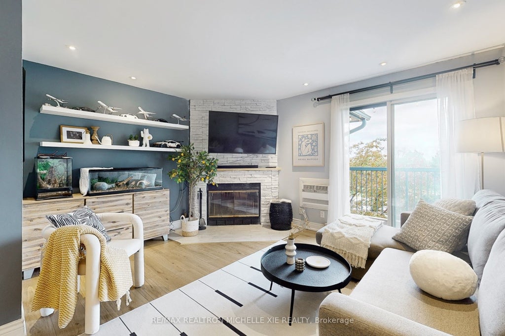 Stunning Top-Floor Penthouse in Tranquil Trailwood Village Facing the Park! Beautifully renovated 2-bedroom, 2-bathroom unit with a functional layout and unobstructed north-facing views overlooking a quiet inner street. The spacious living room features a cozy wood-burning fireplace and walkout to a private balcony with an ensuite storage room, BBQ in the summer with friends and family. The modern kitchen has been professionally and tastefully upgraded with stainless steel appliances, quartz countertops, porcelain tile flooring, and pot lights. The trendy barn door perfectly fits into the unit with the in suite laundry. The large primary bedroom includes a semi-ensuite 4-piece bathroom and two custom built closets. The second bedroom is generously sized, offering a large window and ample closet space, perfect for guest room, second bedroom or home office. Conveniently located just minutes from Square One, Highways 403 & QEW, the upcoming LRT, restaurants, schools, and community centers.