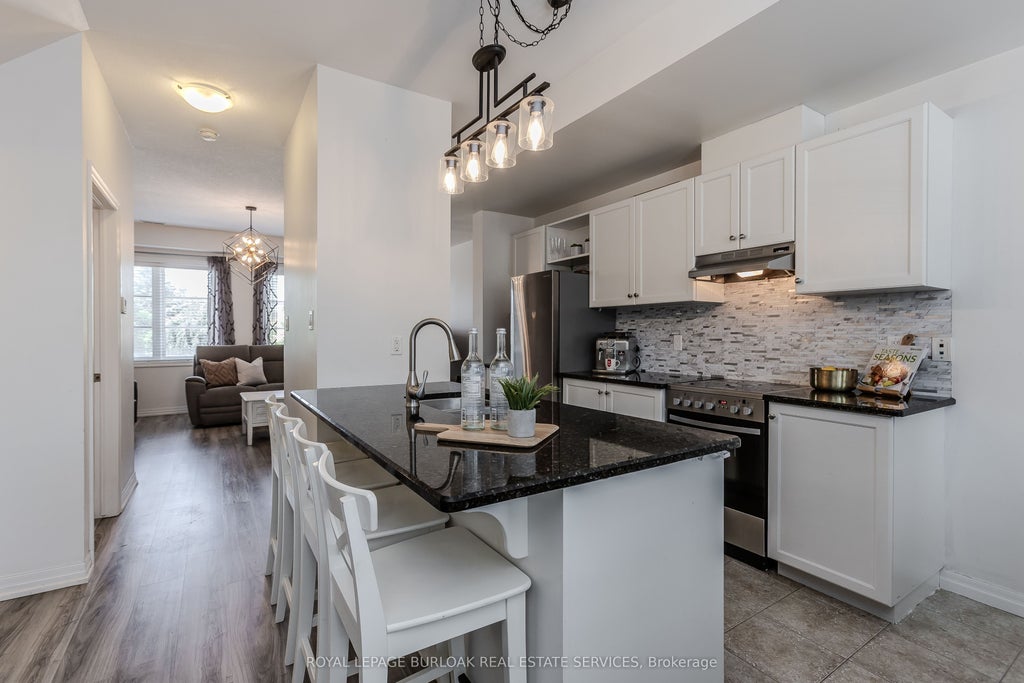 Welcome to stylish urban living in the heart of Aldershot! This bright and modern 2-bedroom, 3-bathroom townhome offers the perfect opportunity for first-time buyers to enter the market in one of Burlingtons most sought-after communities. Mins from the lake and all that downtown has to offer, Royal Botanical Gardens, GO station and with easy highway access for commuters this location cant be beat! The home begins with an inviting walk-up entryway that sets the tone for the contemporary design found throughout. The second level features a smart, functional layout with laminate flooring, and an open-concept living and dining space filled with natural light. The modern eat-in kitchen is a true highlight complete with granite countertops, stainless steel appliances, tile backsplash, center island with breakfast bar, and sleek light fixtures perfect for both cooking and entertaining. A convenient 2-piece powder room completes this level. Upstairs on the third floor, enjoy a spacious primary bedroom with Juliet balcony and a private 4-piece ensuite, along with in-suite laundry for added convenience. An additional well-sized bedroom with dual closets and a second full 4-piece bathroom make this level ideal for guests, roommates, or a growing family. The crown jewel of this home? A massive private rooftop patio on the fourth floor fully fenced with wood flooring, this outdoor space is the perfect backdrop for morning coffee, summer dinner parties, or evening cocktails under the stars. With a modern layout, stylish finishes, and a coveted location close to parks, trails, transit, and vibrant downtown Burlington this turnkey townhome is the full package!