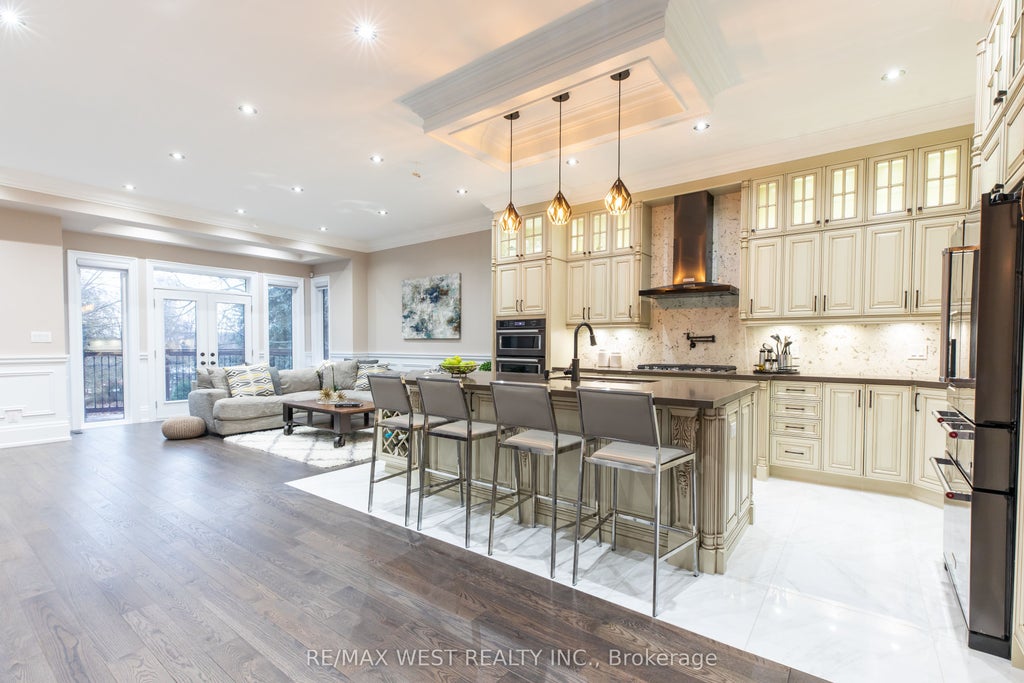 Nestled on a quiet dead-end street in the heart of highly desirable Port Credit, this stunning home offers approximately 4,000 sq ft of refined living space. Designed with elegance and functionality in mind, it features an open-concept living and dining area with soaring 10-ft ceilings and an abundance of natural light. The heart of the home is the incredible designer kitchen, showcasing a large center island, quartz countertops, custom backsplash, and top-of-the-line appliances, perfect for both daily living and entertaining. The dazzling family room walks out to a spacious deck overlooking the beautifully landscaped backyard, creating a seamless indoor-outdoor experience. A large skylight above the staircase fills the home with even more sunlight, adding to the airy and inviting feel. The fully finished walkout basement offers endless possibilities, ideal as an entertainment space or a private in-law/nanny suite. An exceptional opportunity in one of Mississauga's most coveted neighbourhoods. This home delivers outstanding value and must be seen to be fully appreciated.
