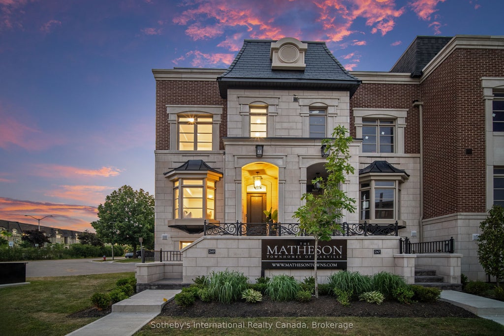 This newly completed, three-storey luxury townhome is part of The Matheson, an exclusive six-unit enclave tucked in one of Oakvilles most sought-after neighbourhoods, just a short walk to Downtown, the lakefront, top schools, and vibrant local amenities. Offering over 3,000 sq ft of thoughtfully designed living space, this home features 3 spacious bedrooms, each with its own ensuite, and 4 beautifully appointed bathrooms. A private in-suite elevator ensures seamless access to every level, combining the scale of a detached home with the convenience of modern townhome living. The chefs kitchen is a standout with 35 feet of custom cabinetry, a full Miele appliance package, sleek quartz countertops and backsplash, and a large central island perfect for entertaining. The family room is anchored by a full-height feature fireplace wrapped in premium quartz, creating an elegant and inviting atmosphere. The private primary suite spans an entire floor and includes a morning kitchen, walk-in closet with custom organizers, and a spa-like ensuite featuring a deep soaker tub, walk-in glass shower, radiant heated floors, and a double vanity. Two secondary bedrooms are located on their own level, with direct elevator access and ample storage. Outdoor living is just as refined, with a front composite deck off the primary ensuite, and a private rear terrace finished in Ipe wood and tempered glass railings, ideal for relaxing or entertaining. Parking for up to 4 vehicles, including a private garage, adds exceptional everyday ease. This turnkey residence blends elegant design, premium finishes, and a prime location, offering the ultimate in low-maintenance luxury living.