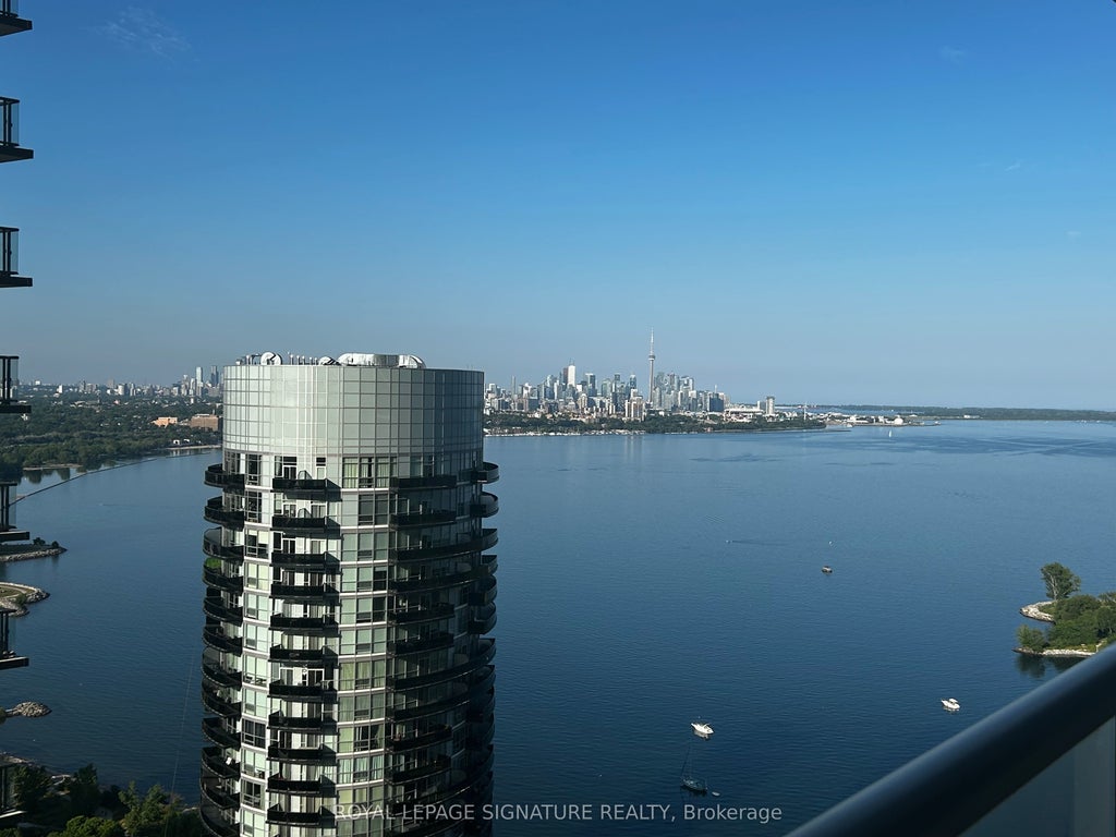 Step into elevated living at Lago at the Waterfront, where this spacious corner suite offers uninterrupted water and skyline views from every room. This spacious 2-bedroom layout is flooded with natural light thanks to its desirable southeast exposure as well as north-facing afternoon sun. Enjoy the luxury of a wraparound balcony with multiple access points, perfect for seamless indoor-outdoor living. The sleek, modern kitchen is equipped with quartz countertops and stainless steel appliances, flowing effortlessly into an open-concept living and dining space designed for everyday comfort and effortless entertaining. Enjoy breathtaking downtown, CN Tower, lake, and cityscape views right from your living room. The primary suite boasts a spacious walk-in closet and offers direct balcony access. Parking & Locker Included. Exceptional Building Amenities include: Indoor Pool, Hot Tub & Sauna, Fully Equipped Fitness Centre, Party Room & Guest Suites, outdoor BBQ Terrace, Dog Wash Station & Car Wash, 24-Hour Concierge & Ample Visitor Parking. Located in the sought-after Humber Bay Shores community, you're steps to waterfront parks, scenic trails, local cafés, restaurants, shopping, and transit. This is a rare opportunity to secure a move-in-ready waterfront home with resort-style amenities at a price that offers exceptional value.