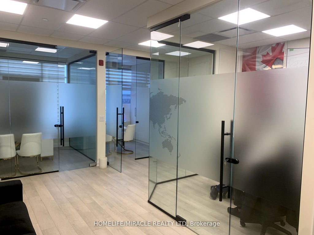 A fantastic opportunity to acquire a fully renovated office space on the second floor of the high-traffic ridgeway plaza. Featuring top-quality interior finishes, Stunning design and custom furnishings, this space includes two private offices and a conference room. Floor-to ceiling glass elements create a sleek, Modern aesthetic. The open area includes a welcoming reception space and a kitchenette equipped with a sink. Fridge and storage. Large windows facing platinum drive provide excellent visibility for advertising opportunities.
