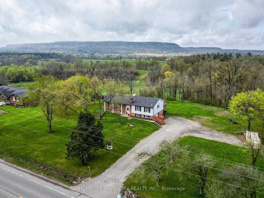 This is a stunning 3-bedroom bungalow that boasts a breathtaking view of the escarpment and is situated on a spacious one-acre lot. The property is equipped with two brand-new full bathrooms, a walk-out basement, and an open-concept kitchen that features stainless steel appliances. The cozy family room is perfect for relaxing, while the spacious living and dining areas lead to a deck that is perfect for entertaining friends and family. The bedrooms are equipped with deep closets, and the huge basement includes a rec room, exercise room, and storage room. This property is located in a great area for commuting, making it an ideal location location for anyone who needs to travel frequently. It has 9 parking with attached garage.