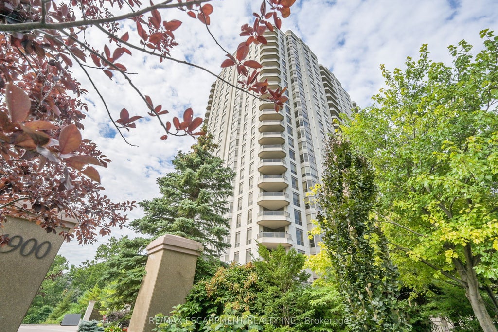 Fantastic opportunity to move into this Luxury Building, known as The Palace. This one bedroom suite is spacious and bright with a large balcony measuring 17'4" x 9'. The views are simply spectacular - panoramic all the way to down town Toronto, Lake Ontario, overlooking the Mississauga skyline and the surrounding ravine and greenbelt. The suite has beautiful hardwood floors, a cozy gas fireplace for those cool evenings, and a convenient passthrough to the kitchen. Great sized bedroom with closet fixtures in the large closet. The entrance is spacious for welcoming guests with it's coffered ceiling and a large coat closet with built-in fixtures. Phenomenal resort style amenities including pool, Club/party room with patio, gym, plus professional car wash & hobby rm. Enjoy all the amenities in the building as well as the walking trails in the surrounding greenbelt.