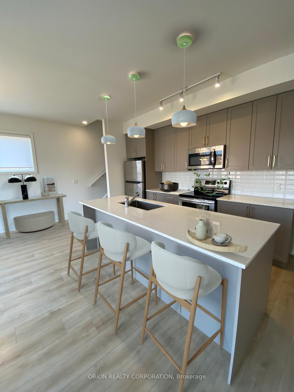 Modern Urban Living in the Heart of North Oakville! Welcome to this beautifully upgraded 2-bedroom, 2-bathroom townhouse offering over 1,100 Sq Ft. of stylish interior space, plus your own private rooftop terrace, perfect for relaxing or entertaining with a BBQ-ready setup. The open-concept layout features smooth ceilings, wide-plank laminate floors, and a sleek upgraded quartz kitchen with stainless steel appliances. The spacious primary suite includes a walk-in closet and ensuite bathroom, second bedroom offers access to a large closet and private terrace. Enjoy the convenience of underground parking, ensuite laundry, and low-maintenance living. Located at Dundas & Sixth Line, this home is steps to parks, schools, shopping, public transit, and major commuter routes. Whether you're a first-time buyer, downsizer, or investor, this home delivers comfort, location, and lifestyle in one of Oakville's fastest-growing communities. Please note that the property has been staged, FURNITURE IS AVAILABLE FOR PURCHASE