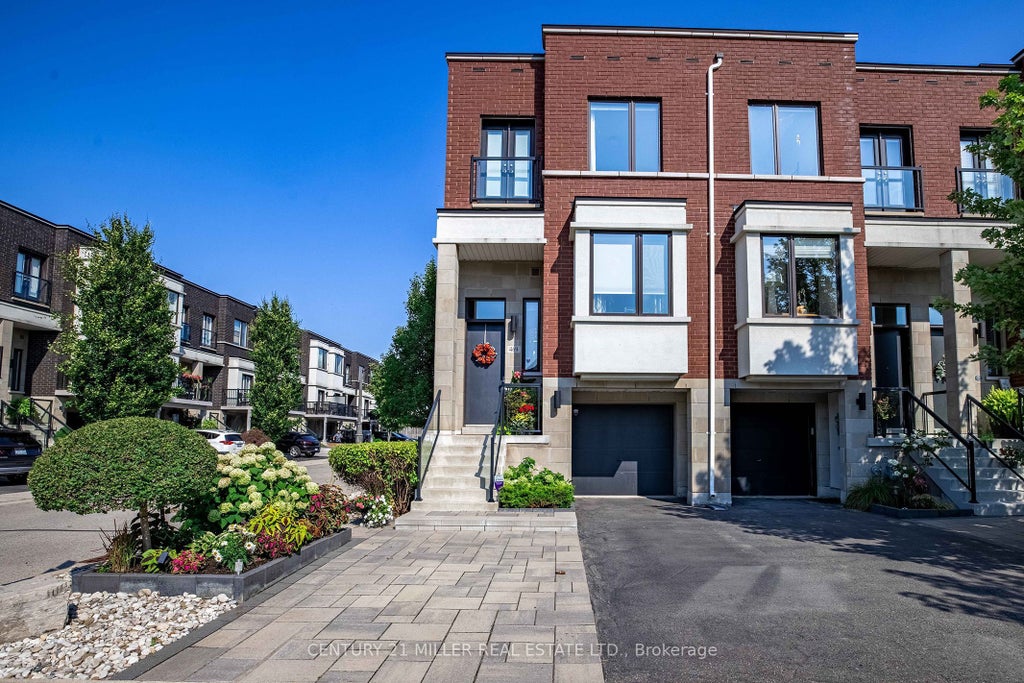 When youre ready to right-size but refuse to compromise on location or sophistication, this is your opportunity. Welcome to your new freehold lifestyle in Oakvilles coveted lakeside community of Lakeshore Woods. This end-unit townhome is among the largest in the complex, offering over 2,000 sq. ft. of living space along with the second-largest backyard!Every detail has been considered in this sleek, well-appointed home. The open floor plan boasts soaring 10 ceilings, wide-plank floors throughout and built-in cabinetry, including a dining room credenza. The kitchen impresses with an island with seating, extra-height cabinetry and top-tier appliances. The family room features a linear fireplace with porcelain surround, a custom bump-out for seating or a bar area and access to a small balcony. A discreetly located powder room near the entry ensures privacy, while the end-unit positioning floods the interior with natural light from additional windows.Upstairs, the large primary bedroom offers a walk-in closet plus wall-to-wall custom storage. A charming bump-out creates the ideal space for a vanity or reading nook. The bright and spacious en-suite features a double vanity. The second bedroom is generously sized and enjoys its own private en-suite with a soaker tub, perfect for guests.The versatile lower level, set at grade, can serve as a retreat, home office or a comfortable third bedroom for guests, complete with a full bath and double closet. Large sliding doors open to the fully landscaped backyard, a private oasis with a water feature, hardscaping, decking, lush plantings, gas bbq hookup and more.Sophistication meets convenience with a proper double-wide driveway and a single-car garage with inside access. A truly exceptional opportunity to enjoy refined living in one of Oakvilles most sought-after communities known for its nature filled walking trails, parks and steps to shopping and lakeside enjoyment.
