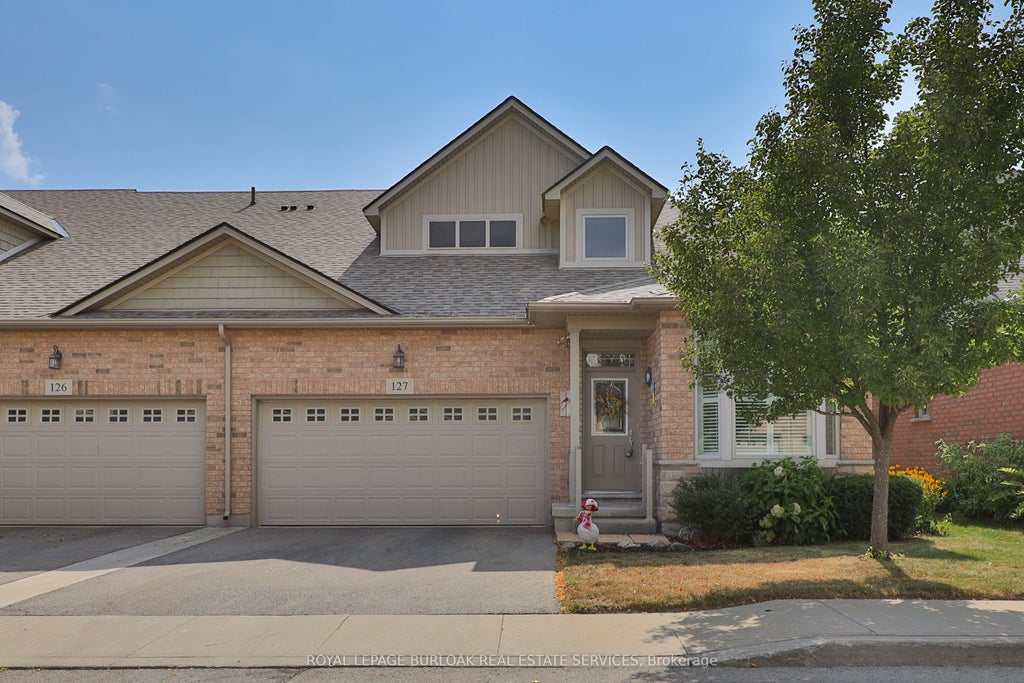 Welcome to this stunning bungaloft townhome, set within one of Burlington's most desirable lifestyle communities. Combining comfort and convenience, this residence offers total parking for 4 vehicles, a landscaped front yard framed by mature trees, and an automatic garage with inside entry. Its location is ideal just steps from scenic parks, vibrant shopping, and dining options, all with effortless access to major highways for commuting or weekend getaways. Inside, you'll find gleaming hardwood floors flowing throughout the main level, creating a warm, cohesive feel. The eat-in kitchen is both stylish and functional, featuring granite countertops, ample cabinetry, a tile backsplash, and stainless steel appliances. A walkout leads directly to your private backyard retreat, perfect for al fresco dining or relaxing with friends. The living room, highlighted by a soaring vaulted ceiling and cozy gas fireplace, offers an inviting space to gather, while the dining room provides a refined setting for entertaining. The main floor primary suite enhances everyday ease with its walk-in closet and 3pc ensuite, making it a perfect haven at days end. A versatile home office easily convertible to an additional bedroom and a 2pc bathroom complete this level. Upstairs, a bright and airy loft area offers flexible living potential ideal as a lounge, reading nook, or creative workspace, accompanied by a spacious bedroom with walk-in closet and a full 4pc bathroom. The lower level, currently unfinished, features a bathroom rough-in and unlimited potential to design the space of your dreams, whether that's a gym, media room, or additional living quarters. The private backyard is a true extension of the home, with an aggregate patio bordered by lush cedars for privacy. A sprinkler system, maintained by the condo, ensures effortless upkeep. This is more than a home its an opportunity to embrace a vibrant, well-connected lifestyle in a fantastic community.