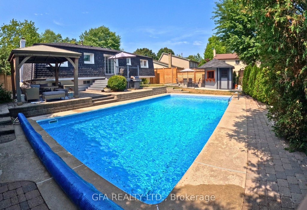 Bright And Charming Family Home Nestled On A Quiet, Child-Friendly Street In Prestigious Southeast Oakville. Situated In An Incredible Neighbourhood With A Strong Sense Of Community And Year-Round Events. This Raised Bungalow Has Been Thoughtfully Updated, Including Renovated Washrooms On The Main Level. The Home Features A Well-Designed Layout With Three Spacious Bedrooms Upstairs And An Additional Bedroom In The Finished Basement, Making It Ideal For Families Or Guests. The Backyard Is A Private Oasis, Complete With An In-Ground Salt Water Pool, Lawn Irrigation System, Gazebo W/Seating Area, And A Versatile Shed That Can Be Opened Into/ Used As A Bar- Perfect For Entertaining! Located Within Walking Distance To Top-Rated Schools, Parks, Lake Ontario, Scenic Nature Trails And More. Conveniently Located Close To All Major Amenities, Public Transit And Major Highways. Offering Modern Touches And A Fantastic Location, This Home Presents A Great Opportunity To Enjoy Comfort, Convenience, And A Vibrant Community Lifestyle In One Of Oakville's Most Sought-After Areas!