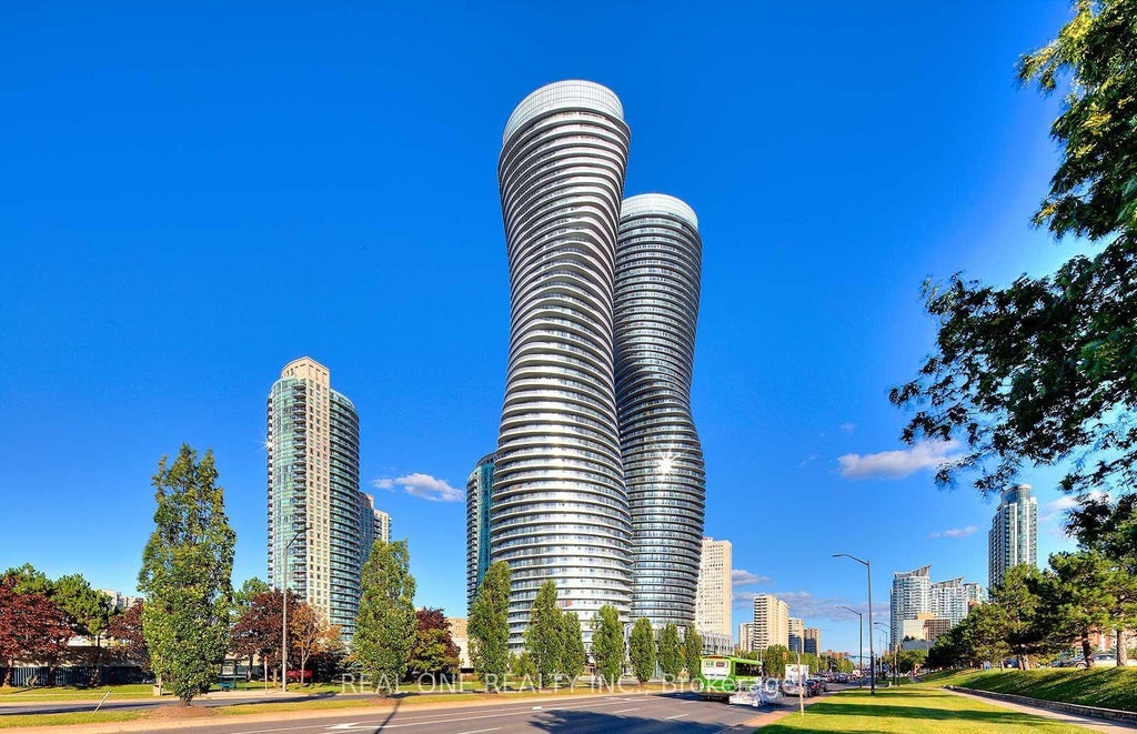 Fabulous Open Concept & Modern 2 Bedrooms 2 Washrooms. Located in the iconic Marilyn Monroe buildings, With Top Amenities & In The Heart Of Mississauga! Spacious Living & Dining W Floor To Ceiling Windows With Unobstructed South East Exposure, It's warm in winter and cool in summer. and Gives You City View & overlooking the Private 3rd Floor Oasis Feat 10,000 Sq Ft Of Green Space Table & Muskoka Chairs. Gourmet kitchen with breakfast bar, quartz counters & oversized under-mount sink, Stainless Steel Appliances, Engage in a healthy lifestyle with the well-equipped gym, indoor/outdoor pools, and squash courts. A theatre and concierge add to the appeal. Located across from Square One, with shopping, dining, and entertainment nearby, and proximity to major highways like 403 and QEW, this prime real estate offers utmost convenience. Split bedroom layout, 2full bathrooms with wrap around balconies and access to balconies from both bedrooms and living room. 1 Parking Spot & 1 Lockers Are Included.