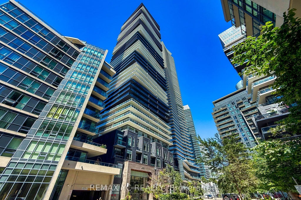 Welcome to waterfront living in the heart of Mimico! This well-maintained southwest-facing residence offers stunning lake views, 9-foot ceilings, and hardwood flooring throughout. Both the primary bedroom and living room provide direct access to the balcony, allowing abundant natural light to fill the home all day. The thoughtfully designed layout features a separate dining and living area, while the kitchen boasts a large island and a dedicated appliance space. The primary bedroom includes a spacious closet and an oversized window with lake views. The versatile den can be used as a home office or open flex space. Proudly owned and never rented, this home has been meticulously cared for by the original owner. Just steps from Lake Ontario and surrounded by all amenities grocery stores, banks, shops, and more with quick access to the Gardiner Expressway. This unit includes one conveniently located parking space(directly in front of the P4 elevator) and one private locker. Move-in ready and waiting for you!
