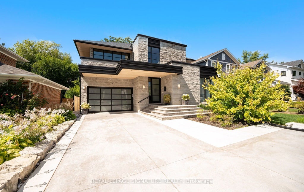 Custom-built Art Deco-inspired home with every detail thoughtfully considered! Offering over 5,700 sq. ft. of living space on a 50 x 150 lot, this residence blends modern elegance with timeless design. Ideally located in the heart of Port Credit Village, steps to Lake Ontario, reputed private and public schools, vibrant festivals, restaurants, and minutes to the Port Credit GO and highways. Inside, striking floating staircases with glass railings, elegant coffered ceilings, and two fireplaces highlight the main floor. A grand foyer with a soaring 19-ft ceiling leads to a sitting room that transitions into a majestic dining area, perfect for hosting. White oak flooring flows throughout. The chef-inspired kitchen features a large quartz waterfall island, Monogram integrated fridge/freezer, JennAir professional grade gas range, double oven, dishwasher, quartz backsplash with pot filler, Sharp microwave drawer, and a butler's pantry with ice maker, sink, and storage add to this gourmet haven. The family room is anchored by a custom fireplace with wood slat detailing and dramatic black surround. A mudroom with custom closets, pet wash station, and stylish powder room complete this level. The open-concept design extends outdoors to a covered dining area with built-in BBQ, overlooking a Japanese-inspired backyard. Upstairs, are four spacious bedrooms, each with ensuite with heated floors; two with custom walk-in closets. The primary suite includes a gas fireplace, expansive closet, walk-out to a private deck, and spa-inspired 5-pc ensuite. A laundry room adds convenience. The lower level offers heated floors, separate entrance, steam shower, wet bar, lounge, and a 800-bottle temperature-controlled wine cellar. Flexible spaces include gym, media, and music rooms; versatile space ideal for work or play. Additional features: heated 5-car driveway, heated garage floor, 2 furnaces, 2 sump pumps, Sonos system, integrated speakers, CCTV surveillance, alarm, Kolbe windows/doors.