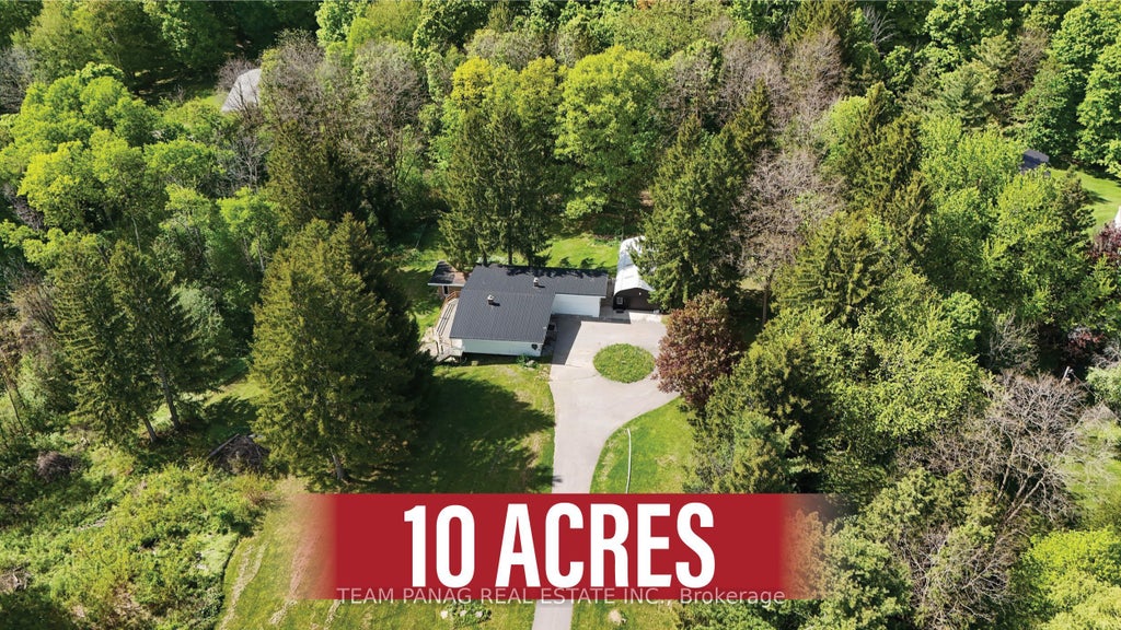 Nearly 10 acres of scenic countryside in Caledon offer the ultimate in privacy and tranquility, nestled among towering mature trees just minutes from Caledon East, Brampton & Bolton. This spacious bungalow features a large living room with expansive windows, an elevator, and a functional kitchen that opens onto a secluded deck perfect for taking in the natural surroundings. With no nearby neighbors, peace and seclusion are guaranteed. The second bedroom on the upper level was previously two separate rooms and could be converted back if desired.The finished walk-out basement includes a separate entrance, a cozy rec room with a wood-burning fireplace, two bedrooms, and two bathrooms. Enjoy direct access from the oversized garage, along with a separate workshop ideal for hobbyists or equipment storage. The gated circular paved driveway provides ample parking, and the backyard includes a fenced area for animals. With frontage on two roads and located on a quiet paved sideroad, this property offers a prime opportunity to build your dream home or generate rental income. Ideally situated close to Caledon East, Bolton, Toronto, and the airport! Come explore the exciting potential this unique property has to offer!