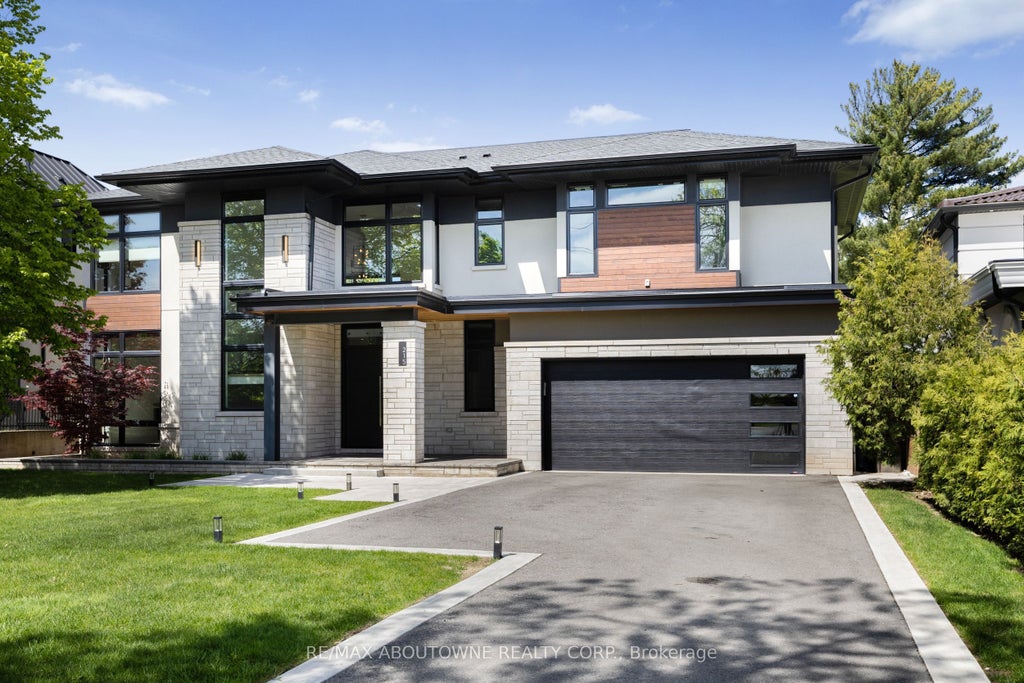 Stunning custom-built modern home designed by David Small located in West Oakville. This 2-storey, 5-bedroom, 5 bathroom residence spans over 4,000 square feet of above grade living space and has approx. $250,000 in recent upgrades. The grand foyer features 20-foot ceilings and large windows that allow natural light to flood the area. The open concept main level offers panoramic views and leads into the living area, also featuring 20-foot ceilings & Lutron Control 4 Lighting system. Sleek designer kitchen is equipped with custom-made Scavolini cabinets, high-end Dacor appliances, a cooktop stove, and a large walk-in pantry. The spacious family room includes a gas fireplace and large sliding glass doors that provide access to the fully fenced private backyard, complete with an inground pool, basketball court, and entertainment area. The 2nd level boasts a stunning primary bedroom with a 5-piece ensuite, double sinks, & walk-in closet. Additionally, there are 3 more generous bedrooms; 2 of which share a 4-piece Jack & Jill bathroom, & another with ensuite privileges as well as a laundry room completing the 2nd level. The fully finished lower level features heated floors, recreation room with gas fireplace, large gym, ample storage space, another bedroom, a 3-piece bathroom, a state-of-the-art theatre room, & a walk-up to the stunning backyard. The backyard has been meticulously landscaped and features a basketball court, fireplace, inground pool, inground sprinkler system, Lutron lighting system, and an entertainment area. Additional amenities include garage car lift, Scavolini closets, two furnaces, two air conditioners, Hunter Douglas motorized blinds, security film on all windows and a paved driveway accommodating up to six cars. Located within walking distance to several top schools, restaurants, Lake Ontario, coffee shops, and minutes from downtown Oakville, the QEW, and Appleby College. Do not miss the opportunity to own this exceptional home.