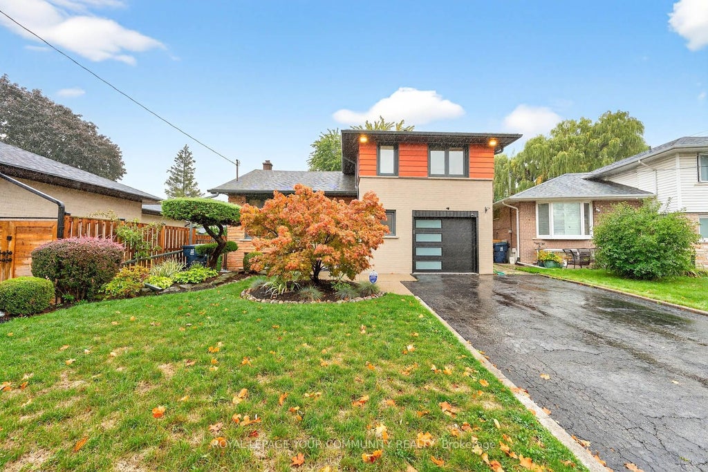 Where style meets substance, offering not only stunning renovations but also extensive updates to core systems for true long-term value. This beautifully upgraded 4-level sidesplit features 4 bedrooms, 3 baths & landscaped 150-ft lot. Imported Italian porcelain & engineered hardwood floors, chandelier lighting & inside access to oversized garage with shelving and large picture windows w/remote blinds throughout. A fully rebuilt kitchen (to the core) with quartz waterfall island, Italian porcelain floors, pot lights, under-cabinet lighting. Oversized sliding doors to covered wood deck and private treed backyard. Living & Dining areas brag with crown moulding, oversized windows, pot lights, upgraded lighting, wall sconces, dimmer switch & original decorative plaster ceiling for the right touch of nostalgia. Hardwood stairs w/painted risers & wrought iron pickets take you to the Upper level with luscious floors, upgraded lighting & electronic blackout blinds. Primary bedroom with double closet & backyard views, two additional bedrooms plus fully rebuilt 3-piece bath w/ Blue Italian porcelain, mosaic shower floor, glass shower doors & large vanity. Lower level with custom laundry room featuring cabinetry, quartz counters, undermount sink & a Home theatre with 95-inch projection screen, smart projector, included L-shaped seating, party lights & pot lights w/dimmer. A recently added full bath with Italian porcelain, suspended cabinetry & glass shower. Ample storage includes broom closet, cantina, expansive crawl space & furnace room. Exterior landscaped front and rear yards, numerous sitting areas, large shed, mature trees, driveway for 6, new insulated garage door. Major updates include furnace, AC, humidifier, all windows, front door, sliding door, eaves & downspouts, roof, interior doors & trim, plumbing & HVAC systems. Electronic blinds, smart home security, freshly painted. Move-in ready with comfort, efficiency, and confidence for years ahead. See 3D Tour!