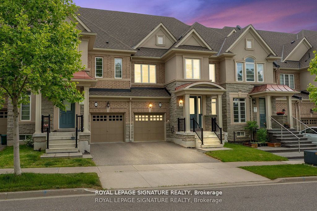 Welcome to 3453 Fourth Line by Rosehaven Homes, your perfect 3-bedroom 3-bath freehold townhome located in Oakville's most desired Glenorchy community. Step inside to high 9' ceilings and elegant hardwood floors on the main floor, and pot lights throughout both levels, leading outdoors to a fully-fenced backyard with manicured lawn, wood deck and gas BBQ line, perfect for gatherings. The open-concept kitchen features modern appliances, ample cabinet space with breakfast bar, quartz countertops & gas range. A living room complete with a gas fireplace. The second floor includes 3 spacious bedrooms, with the master suite boasting a walk-in closet and a luxurious 5-piece ensuite. A large guest bathroom and a conveniently located laundry room on the second level. Additional upgrades include EV charger, central vacuum, and owned hot water tank. Located in Oakville's Glenorchy community, this home is near top-rated schools, nature trails, golf courses, newly renovated sports complex, hospital and Highway 407.