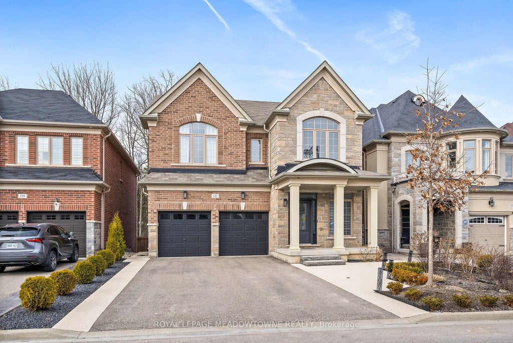 Welcome to the Enclaves of Upper Canada  this stunning and spacious home is tucked near the end of a quiet cul-de-sac, in a fantastic neighbourhood with curb appeal and natural beauty. This impressive 3,141 sq ft 2-storey residence is finished in elegant brick and stone and backs directly onto a lush ravine teeming with wildlife and year-round scenic views. Step inside through a large foyer with soaring 20-foot vaulted ceilings that create an immediate sense of openness and warmth. The entire floorplan is beautifully designed with 9-foot ceilings and rich hardwood flooring throughout. At the heart of the home is the oversized eat-in kitchen, featuring an expansive quartz island with breakfast bar seating for four, sleek built-in stainless steel appliances, and an open-concept layout perfect for gathering with family and friends. Sliding glass doors lead to an elevated deck with peaceful views of the forest beyond your own private retreat. The adjoining family room is a cozy yet spacious setting with a gas fireplace, hardwood floors, and expansive windows that frame the tranquil backyard. Entertain in style in the formal dining room with coffered ceilings or unwind in the inviting living room. Upstairs, discover four generous bedrooms, all with hardwood flooring and abundant natural light. The oversized primary suite overlooks the ravine and features a walk-in closet with custom built-ins and a luxurious 5-piece ensuite complete with dual vanities, a freestanding tub, and a glass shower. A second bedroom also boasts its own 3-piece ensuite and walk-in closet, ideal as a second primary or guest suite. Three bathrooms serve the upper level for optimal convenience. The expansive, untouched basement offers full-height ceilings, large windows, and a bathroom rough-in an ideal canvas for a future guest suite, recreation space, or additional living quarters. The exterior is thoughtfully landscaped for low maintenance and lasting beauty in both the front and backyard.