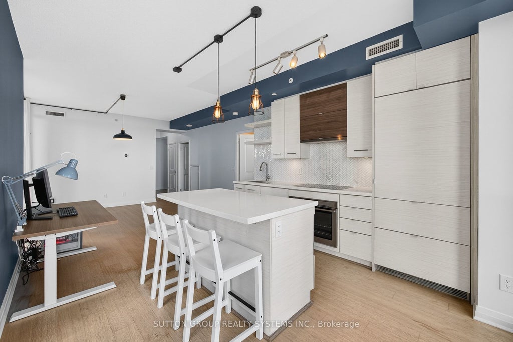 Unlike Conventional High-Rise Buildings, This Unique Boutique Condominium Offers An Exclusive Level Of Luxury & Privacy For Those Who Desire A More Distinguished & Upscale Lifestyle. Presenting This Stunning 2 Bedroom 2 Bathroom Condo With An Underground Parking Spot & A Locker Nestled In One Of Most Sought After Toronto Locations. Meticulously Kept, This Condo Offers A Practical & Spacious Layout Boasting A Desired Split 2 Bedroom Floor Plan With Each Full Bathroom Servicing Their Independent Bedroom. Walk In To This Unit & Breath The Openness - Be Inspired, Unwind Your Creative Side & Get Carried Away By The Naturally Bright Open Concept Layout With Gorgeous Finishes, Neutral colours & Tons Of Upgrades Including Gleaming Floors, Floor To Ceiling Windows, High Ceilings, Sparkling Clean Modern Kitchen, Boasting Built-In Appliances, A Large Centre Island , Quartz Countertops, Undermount-Sink, Track Lights, Backsplash & Lots Of Cabinet/Counter Space. One Large & Comfortable Primary Bedroom Flooded With Tons Of Natural Light Offers A Walk-In Closet Equipped With Closet Organizers & An Ensuite Bathroom With Engineered Stone Vanity Top. Conveniently This Condo Is Equipped With An Ensuite Upgraded Washer and Dryer Combo. Walk Out & Enjoy Your Own Covered Balcony Offering A combination Lake & City-Views. With Top Notch Amenities Including An Indoor Pool, A 24-hour concierge, Fitness Studio, Yoga studio, Whirlpool, Party Room, Billiard- Room, Guest Suites, Outdoor Courtyard With A BBQ Area, Rooftop Terrace, Experience a Truly Elevated Way Of Living In This Boutique Residence, Which Delivers A Sense Of Luxury & Exclusivity Rarely Found In Larger Buildings. This is A Home For Those Who Appreciate Fine Living. Schedule A Private Tour To Experience Its Unique Charm & See Why It's The Perfect Place To Call Home For Now.