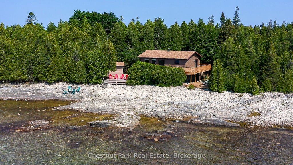 This euphoric waterfront home or cottage boasts over 320 feet of breathtaking Lake Huron shoreline with desirable southern exposure. Cherished by the same family for nearly 40 years, this retreat has been lovingly maintained. Recently updated inside and out by skilled local tradespeople, the pride of ownership shines throughout. Featuring 4 bedrooms and 2 beautifully appointed bathrooms, the spacious primary bedroom includes a king bed and direct access to the elevated wrap-around deck. The well-appointed kitchen with dining space is fully equipped with newer appliances. A wood-burning stove adds warmth and ambiance on chilly evenings. The fully finished lower level features two spacious bedrooms and a modern 3-piece bathroom with laundry. This home is tastefully decorated and furnished with luxurious pieces, being sold fully turn-key with all contents included. The exterior is maintenance-free and adorned with new upper and lower decks, windows and doors. Expansive windows across the front offer stunning lake views, while the large upper wrap-around deck provides ample space to entertain and enjoy the beauty of the surroundings. Easy lake access allows for swimming and kayaking, with ocean-like views that will take your breath away. The property also includes a large 24 x 36 insulated garage/shop and 8 x 12 bunkie. If you're seeking peaceful privacy, this home is perfect. Simply bring your groceries and immerse yourself in luxurious tranquility.