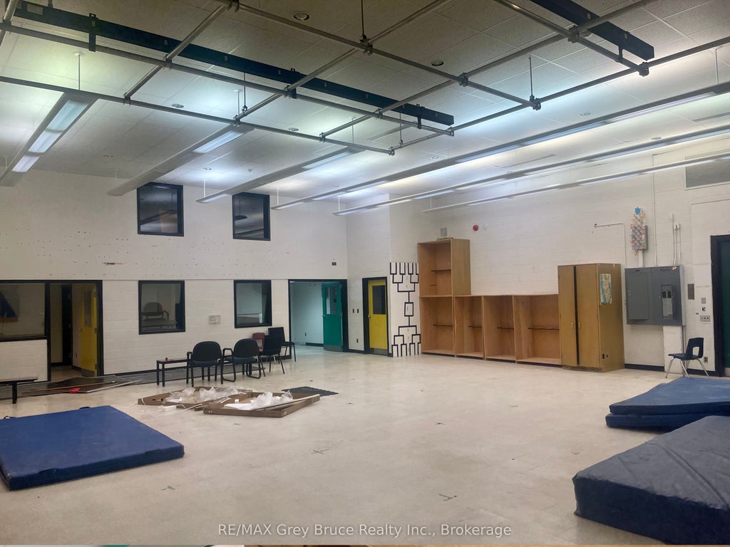 Previously a music room, but many possibilities, perfect for music instruction, band practice, or theatre classes. This space includes a welcoming front office, two additional rooms ideal for storage or small one on one teaching sessions, an upstairs viewing room overlooking the main area, and interior stairs connecting both levels. A fantastic opportunity for creative or performing arts programs in a well-equipped and functional setting.