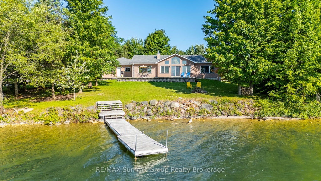 OPEN HOUSE: Saturday, August 2nd 10 AM - 12 PM. Tucked into the sought-after Plantt's Point community on Lake Eugenia, this south-facing waterfront property checks all the right boxes for a relaxed, four-season lifestyle. With 130 feet of shoreline and just over half an acre of land, it's the kind of place where mornings start on the dock with a paddle & end around the fire pit under the stars. The wide lot offers not just space, but options. There's a dock ready for jumping into the lake or parking the boat, & in the east corner, a gently sloped entry makes lake access easy, ideal for creating a sandy beach area for kids, summer lounging, or launching your kayak. The all-brick bungalow offers over 2,000 square feet on the main level, plus a finished walkout basement, so there's plenty of space whether you're hosting for the weekend or calling it home. Inside, the vaulted living room is anchored by a double-sided wood-burning fireplace, with floor-to-ceiling tilt-and-turn windows that flood the space with light & frame the lake view beautifully. These premium European-style windows are not only stylish but also offer top-notch insulation, ventilation, and security. Sliding doors open to a full-length deck, perfect for lazy afternoons or impromptu happy hours with friends. The kitchen has loads of storage and connects easily to the dining area, making it feel just as comfortable for a quiet dinner as it does for a big family brunch. The primary bedroom faces the lake for a peaceful morning view, while two more bedrooms & a second bath have their own private wing with a separate entrance. The walkout level has a large rec room, pool table & games area, second kitchen, third bath, fourth bedroom, and a large den that offers additional sleeping space for guests. There's also direct access to the attached double garage. Set on a paved, municipally maintained road and just a short drive to Beaver Valley Ski Club, the Bruce Trail, and the towns of Collingwood and Meaford.