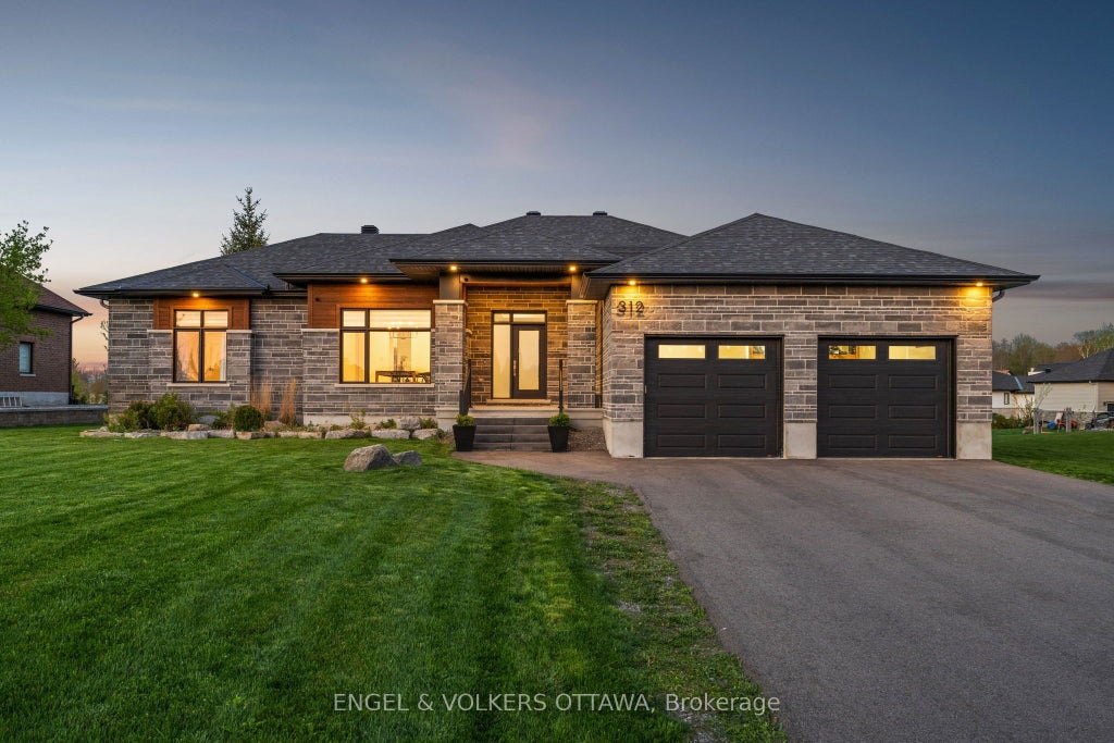Welcome to 312 Shoreway Drive, an impeccably crafted bungalow nestled in the exclusive Lakewood Trails enclave of Greely. Built by custom home builder Mackie Homes, this Briard model offers over 2,180 sq.ft. of refined living space, designed to exceed modern luxury standards while embracing timeless elegance. From the moment you enter, you're greeted by a flowing open-concept layout and designer-selected finishes that elevate every space. The gourmet kitchen is a showpiece outfitted with bespoke cabinetry adorned with crown moulding, quartz surfaces, a grand centre island with seating, and a walk-in pantry seamlessly connecting to a sunlit breakfast area and impressive great room. Soaring ceilings, a striking gas fireplace with full-height feature wall, and a wall of windows create an atmosphere of both warmth and grandeur. Step through oversized patio doors to your covered deck and expansive backyard the perfect backdrop for elegant outdoor entertaining.The primary suite offers a walk-in closet and a spa-inspired ensuite featuring a freestanding soaker tub, glass-enclosed shower, and his-and-hers vanities, all designed with a refined palette and high-end materials.Two additional bedrooms, each with walk-in closets, share a thoughtfully designed Jack-and-Jill bathroom, ideal for guests or family. The partially finished lower level recreation room offers additional space to relax, entertain, or create a private home theatre or fitness retreat. Lots of potential for an accessory unit or in-law suite with garage access to the basement and rough in for a bathroom. Reach out today to experience quiet luxury in one of Greelys most sought-after communities.