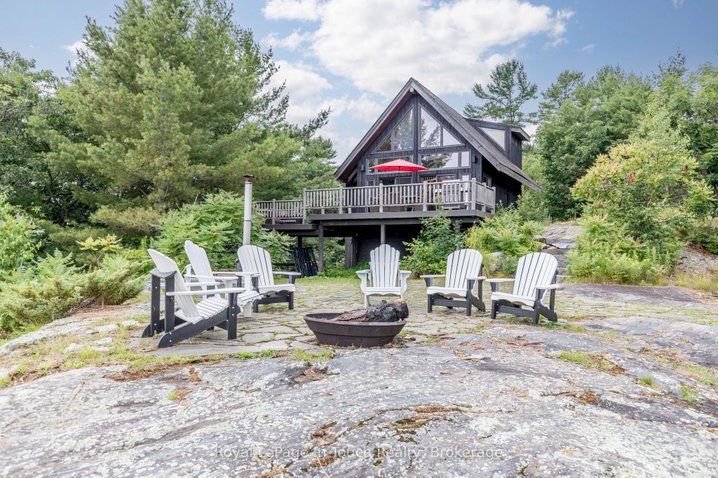 Welcome to B686-8 Derbyshire Island. This 3 season 3 bedroom 1 bathroom cottage sits on 3.14 acres, at the top of a stunning granite hill, with an impressively crafted granite staircase on a gentle slope down to waters edge; here you will find an expansive deck and dock situated beside a beach area that will keep your family and friends entertained for hours throughout the summer days. The view from the cottage gives you 180 degree vantage from north to south, the sunrise is stellar and the moonrise is breathtaking. There is ample space on the deck as well as on the stone patio for entertaining or just quietly enjoying the presence of peace and tranquility this property provides. The stone patio encompasses the fire pit and custom built hot tub into the granite; just imagine the views from this vantage point. On the southerly portion of the property as you walk down through the clearing in the trees there is large natural beach providing more space to enjoy and make your family memories. The 10x10 bunkie provides space for those growing teenagers or added privacy for your guests. This captivating property is located about 20 mins south of Parry Sound by boat. It is in close proximity to the Sans Souci and Copperhead Association on Frying Pan Island where you find endless activities for all ages from summer day camp, tennis, pickle ball and so much more. Other amenities in the area accessible by boat only includes a marina and restaurant. This area and little piece of paradise is surrounded predominantly by park and crown land, an added bonus.