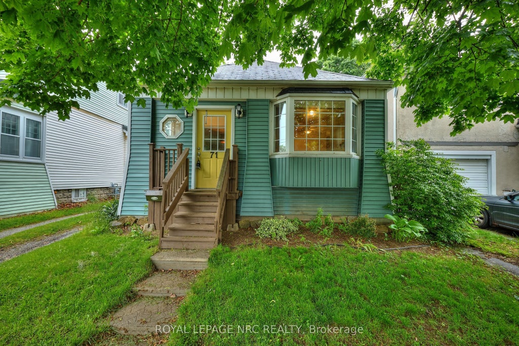 Welcome to 71 Dufferin Street, a cute 2 bedroom bungalow in the heart of downtown and only steps to Haig Park. The spacious back yard is fully fenced and the private driveway accommodates 4 cars. As soon as you walk in the front door you will be impressed by the overall feeling of roominess. The living room and dining room are combined. The eat-in kitchen is close by and provides a breakfast bar for those quick meals. The main level has 2 bedrooms. Attached to the primary bedroom is a sitting/dressing room that is flooded with natural light. A perfect spot to curl up with a favorite book. A roomy 4 piece bath finishes off the main floor. In the basement you will find a 2 piece bath and loads of storage space that could easily be finished. Located just minutes from shopping, public transit and the QEW this move-in ready home offers style comfort and convenience
